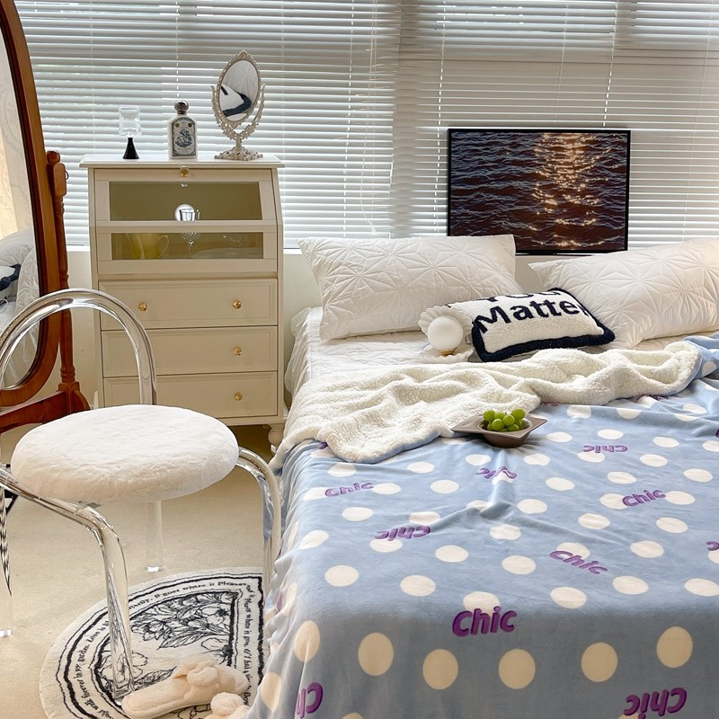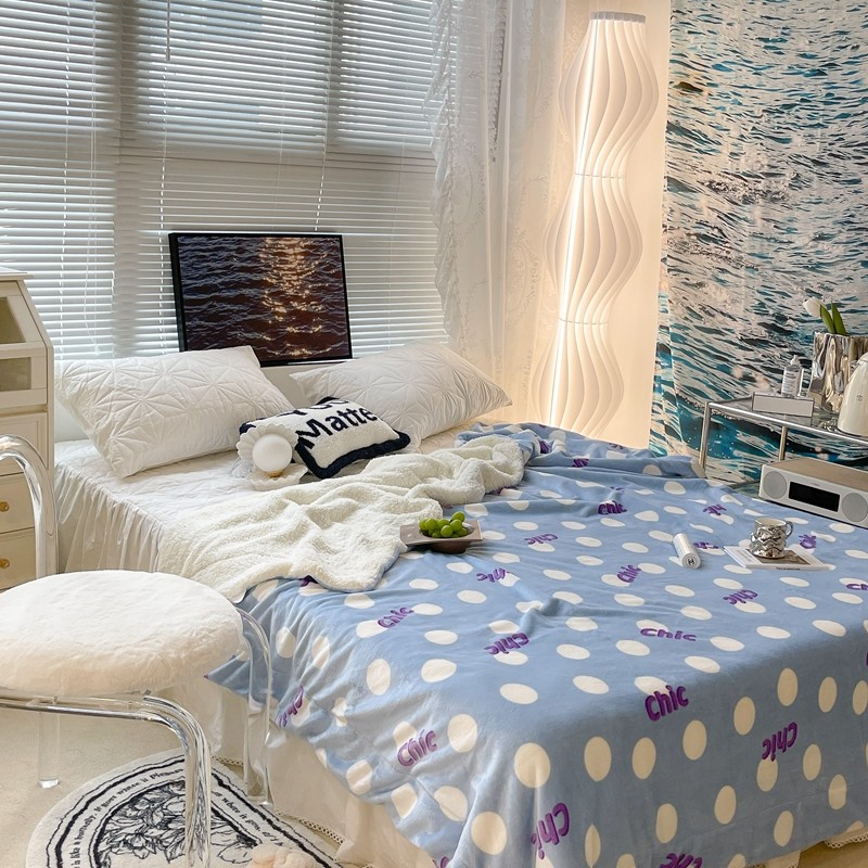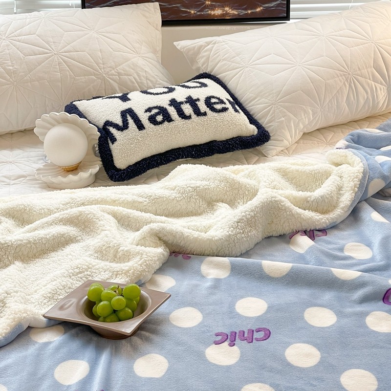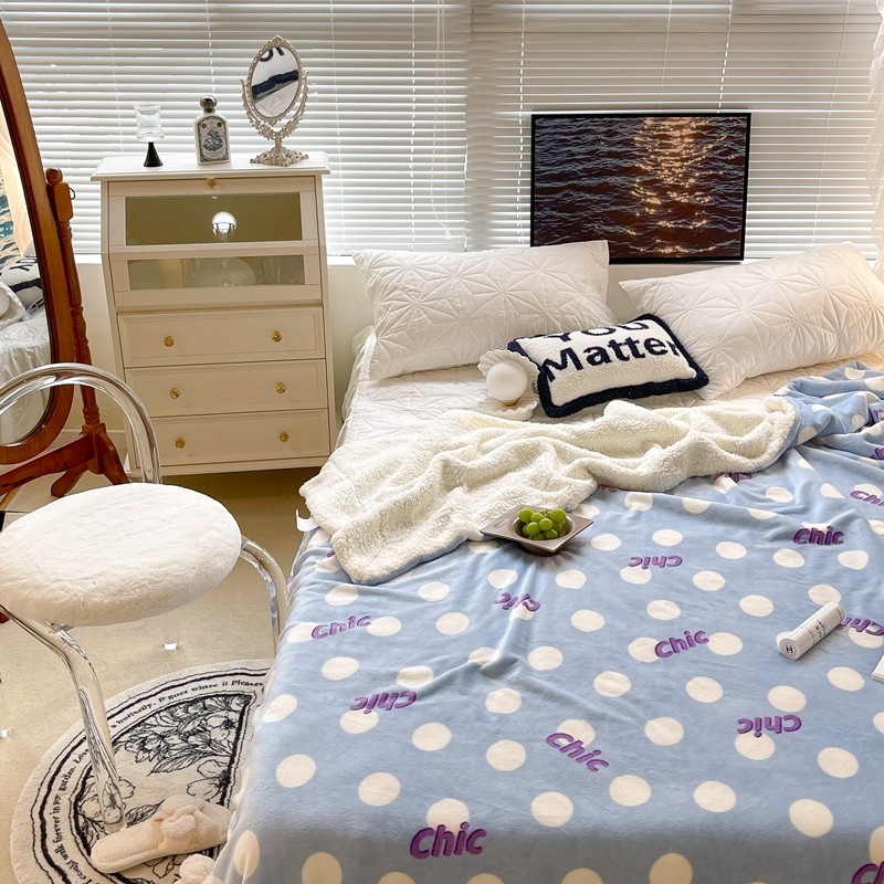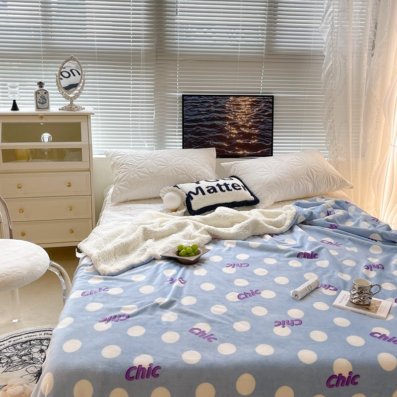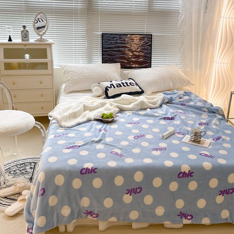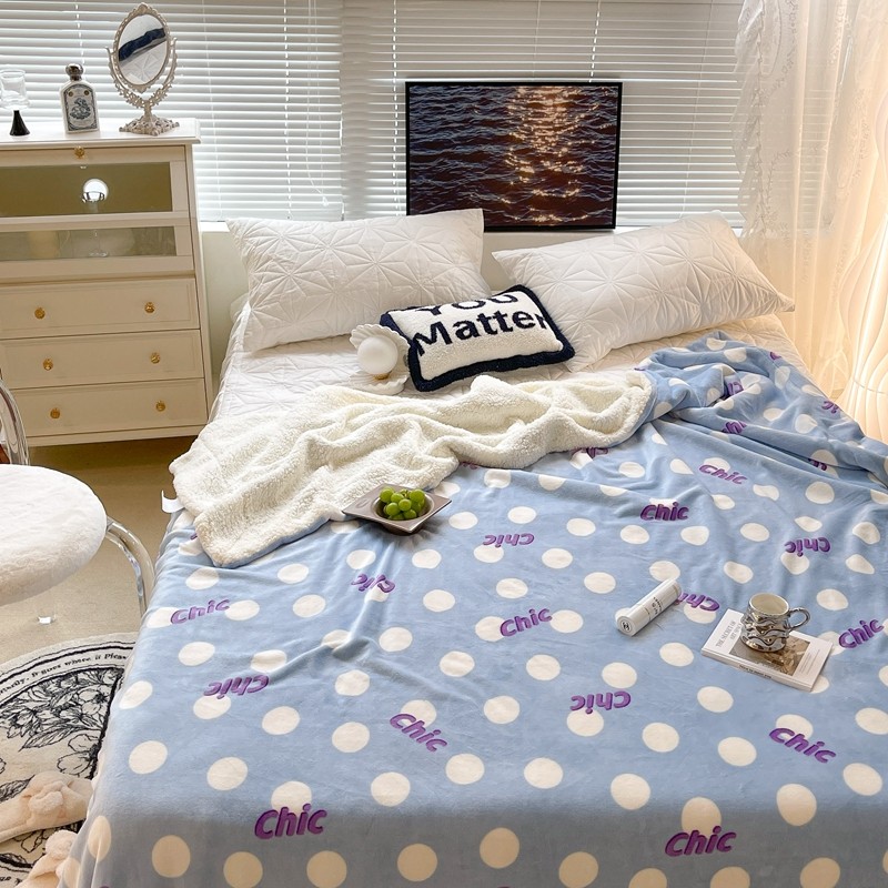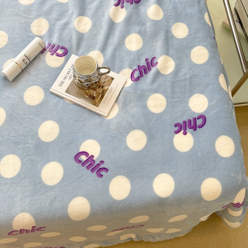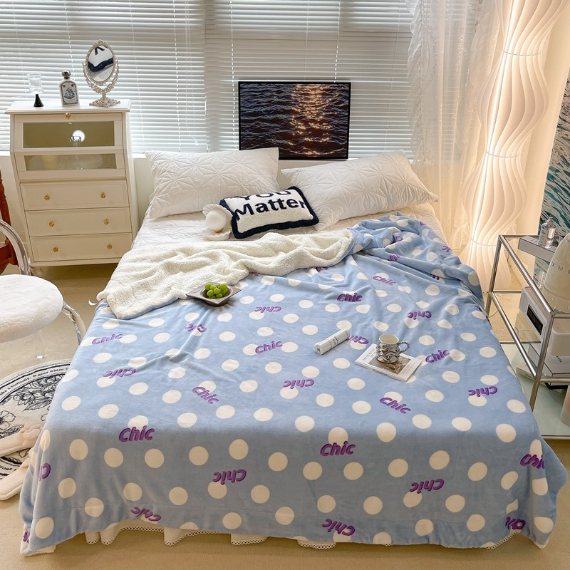 昔可家纺 2021新款牛奶羊羔绒印花毯 蓝色波点chic