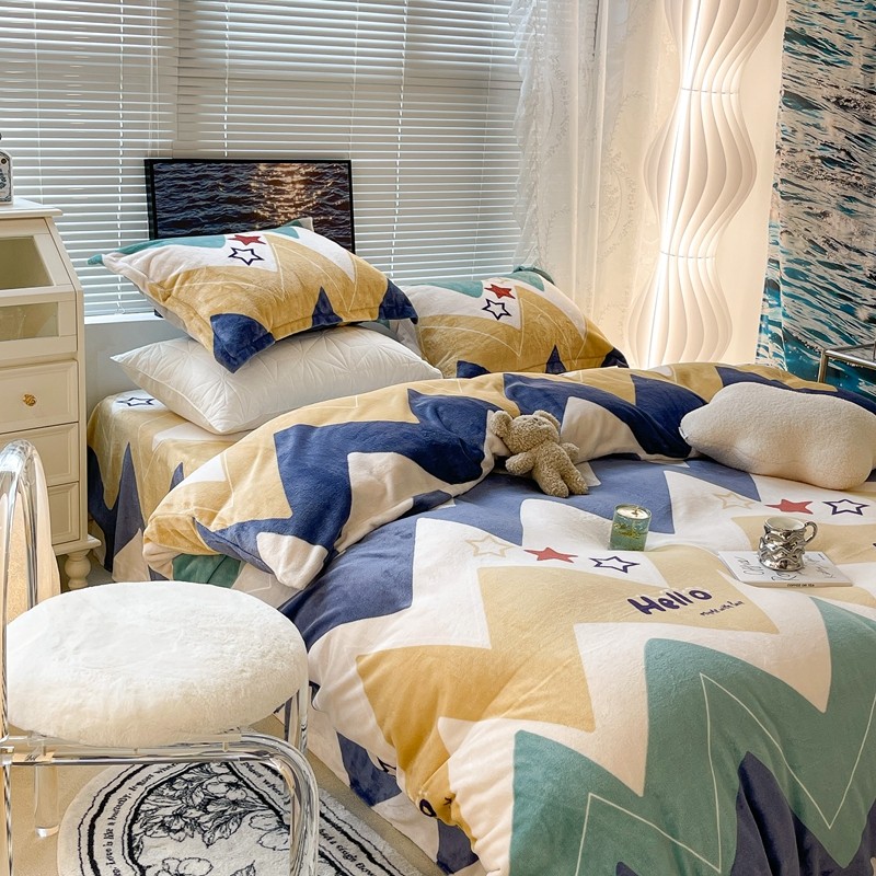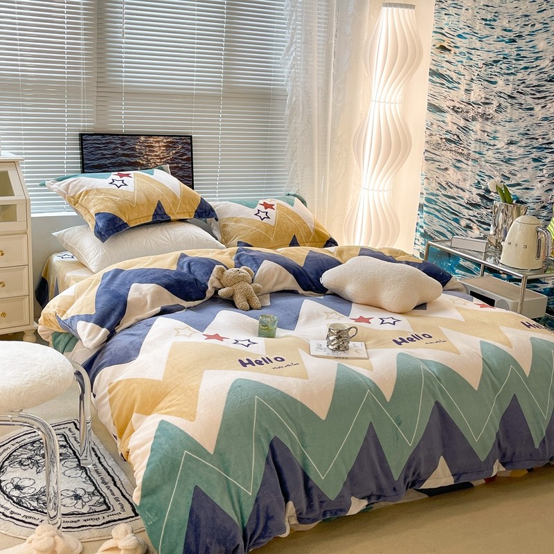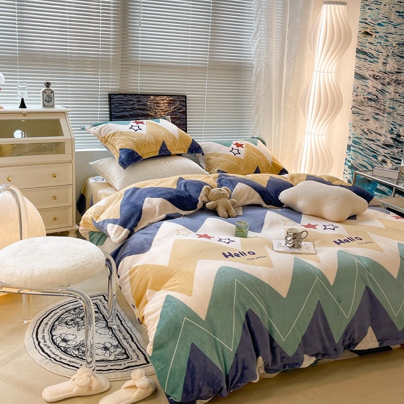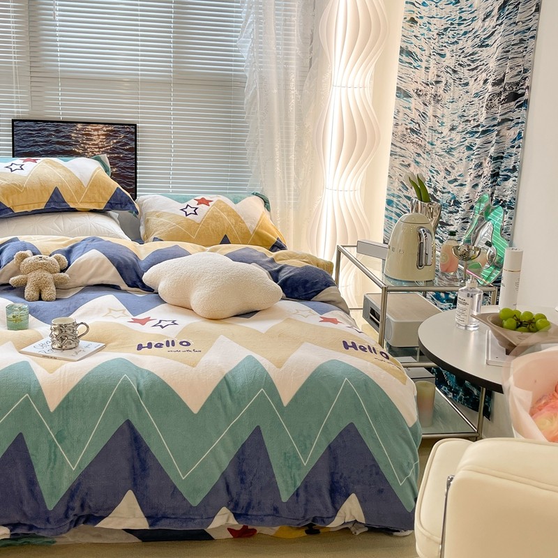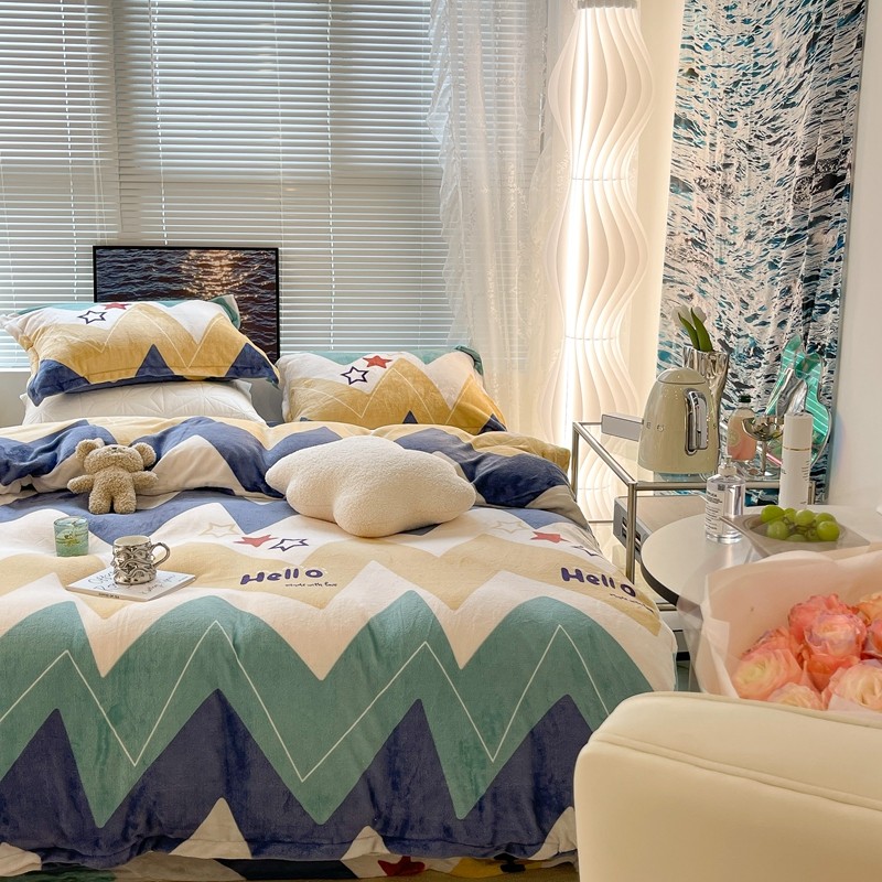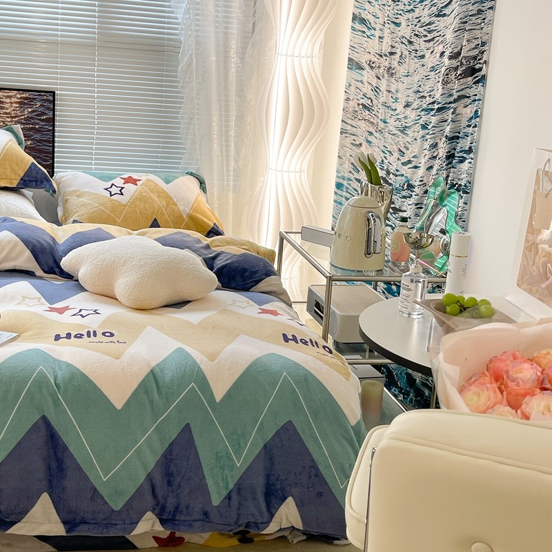 昔可家纺 2021新款牛奶绒四件套-一批 时尚曲线