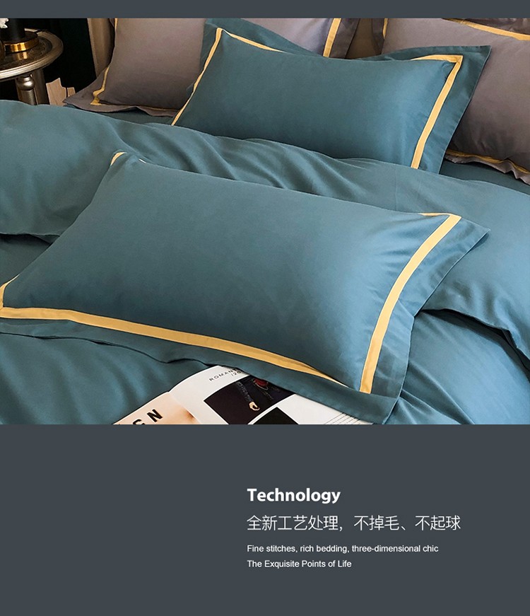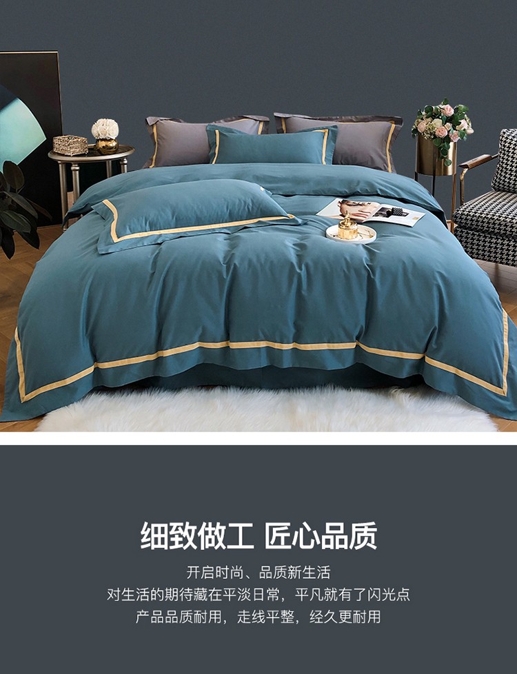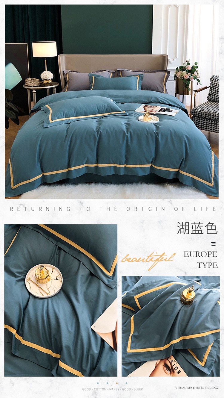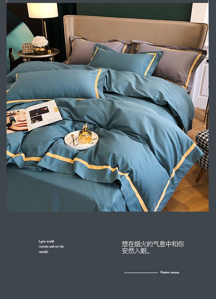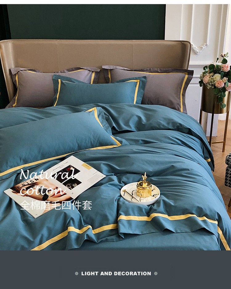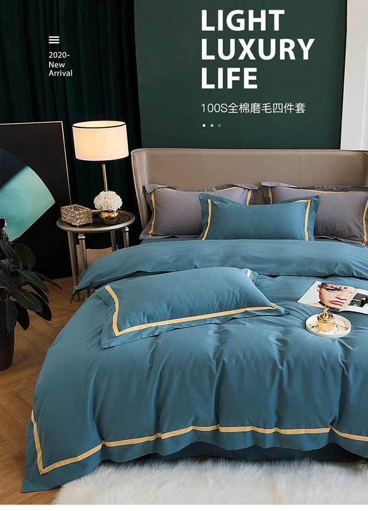 初拾 2021新款100支磨毛四件套-格瑞斯 湖蓝色