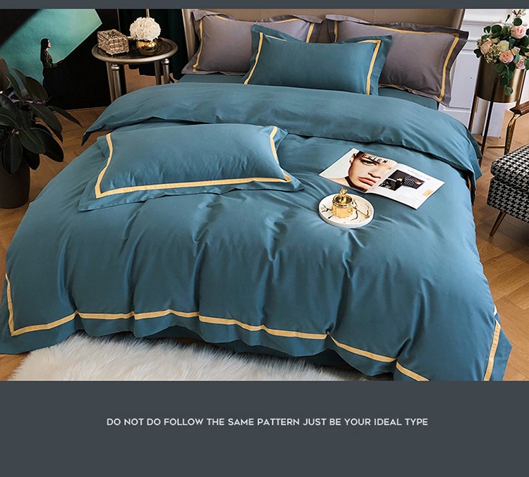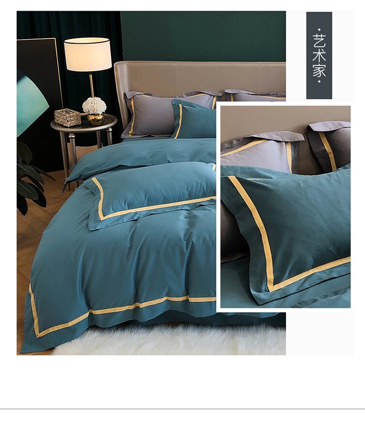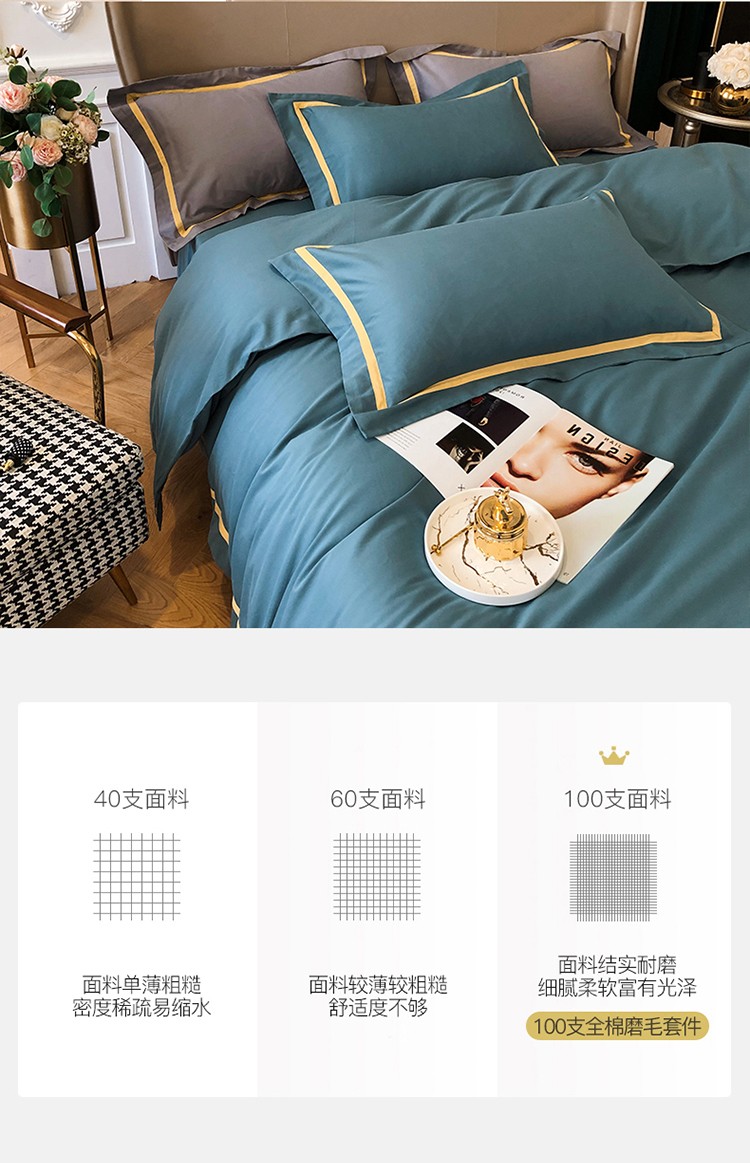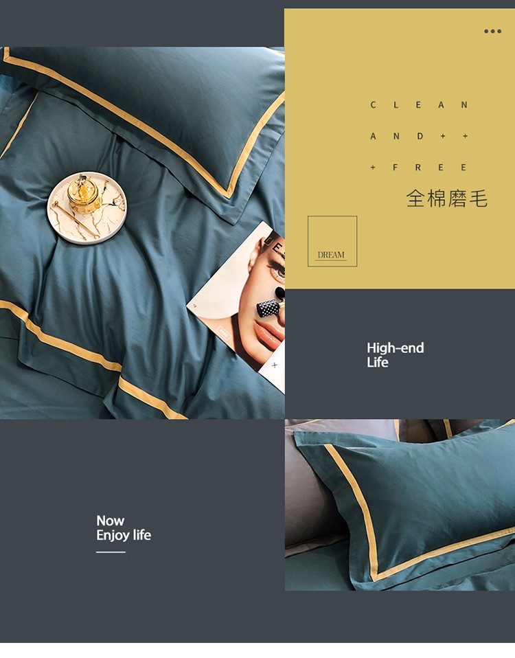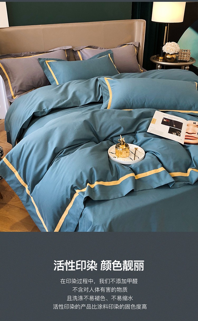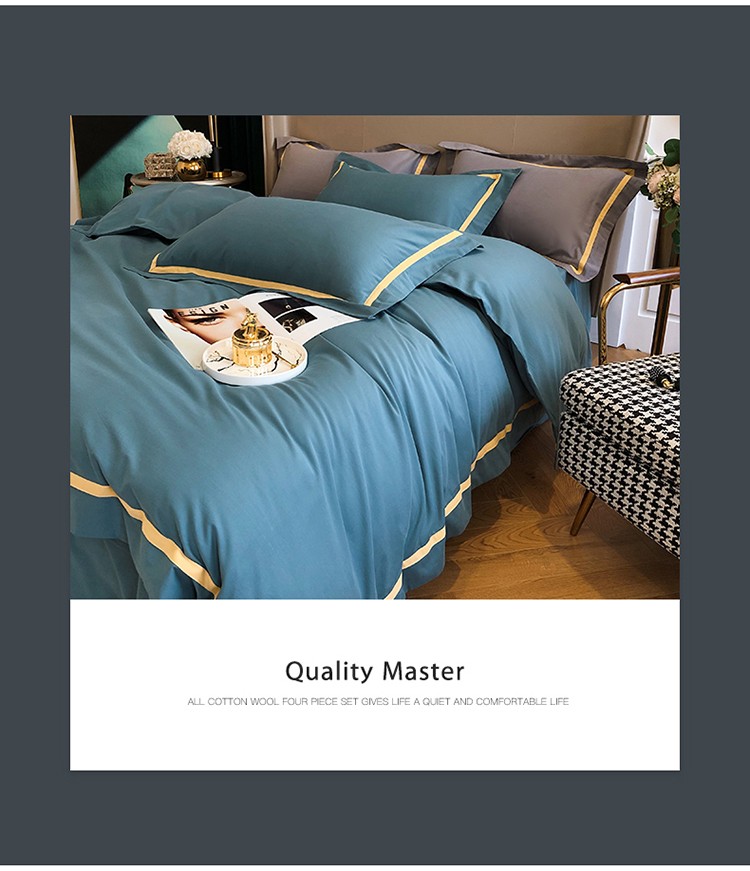初拾 2021新款100支磨毛四件套-格瑞斯 湖蓝色