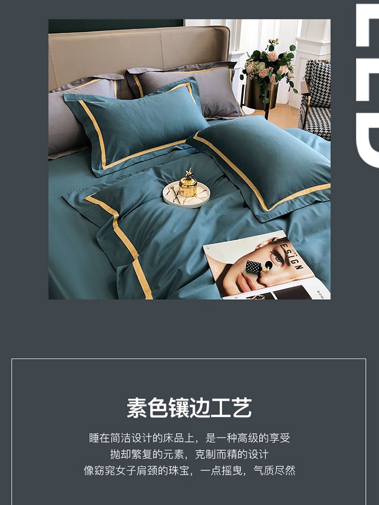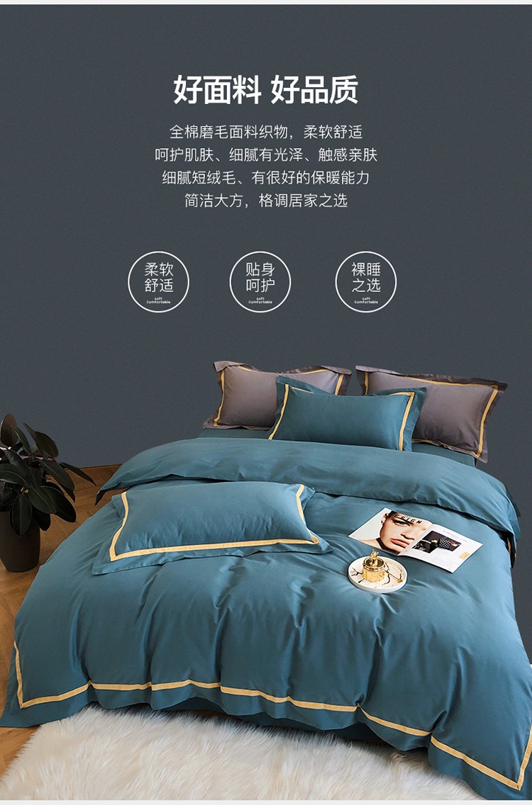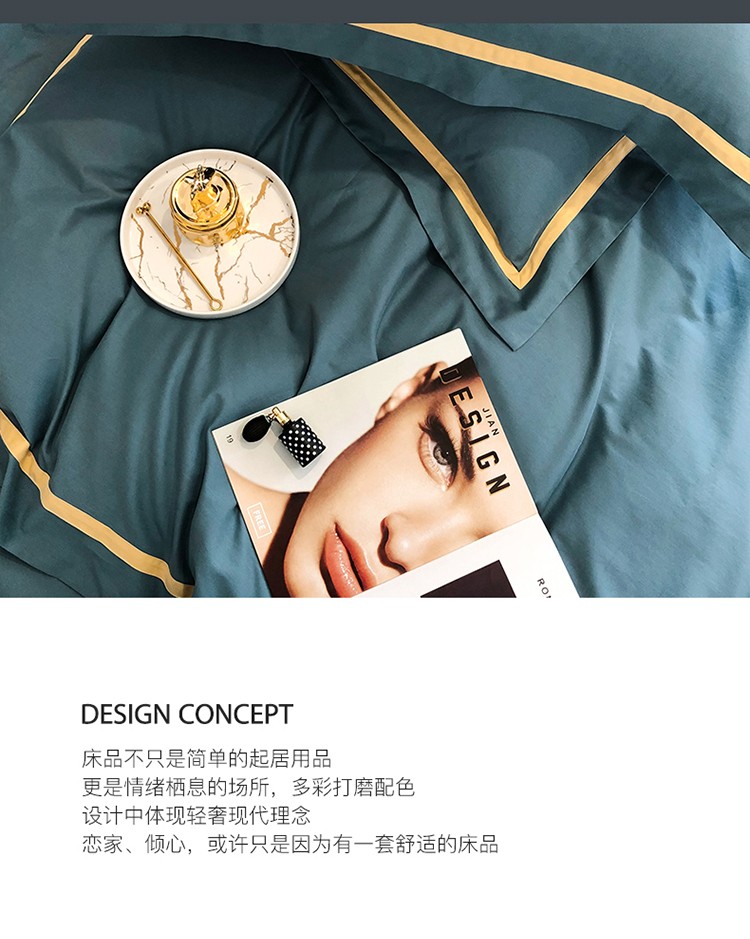 商品名称:初拾 2021新款100支磨毛四件套-格瑞斯 湖蓝色