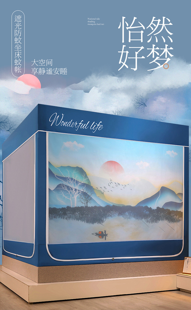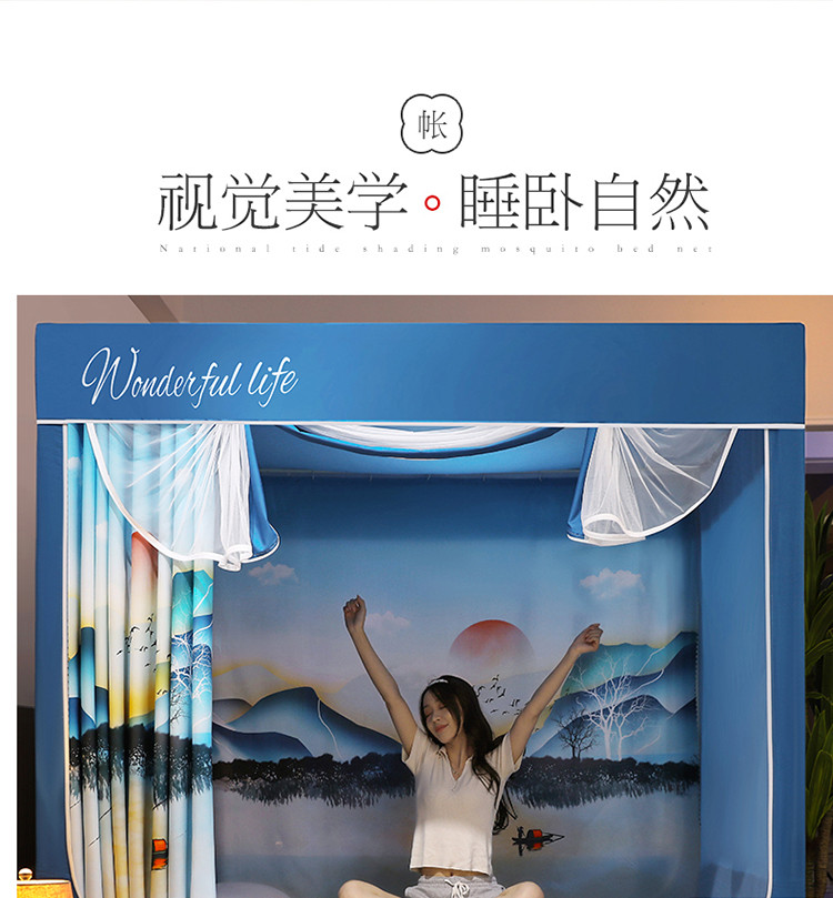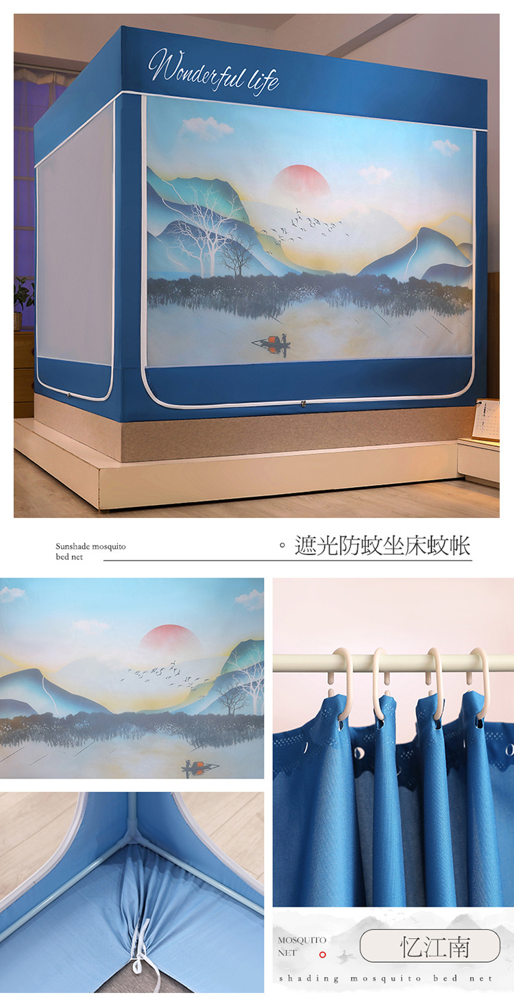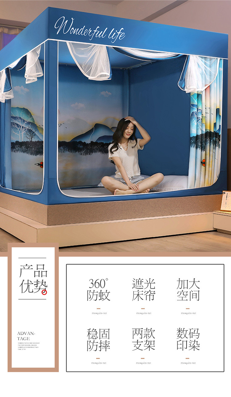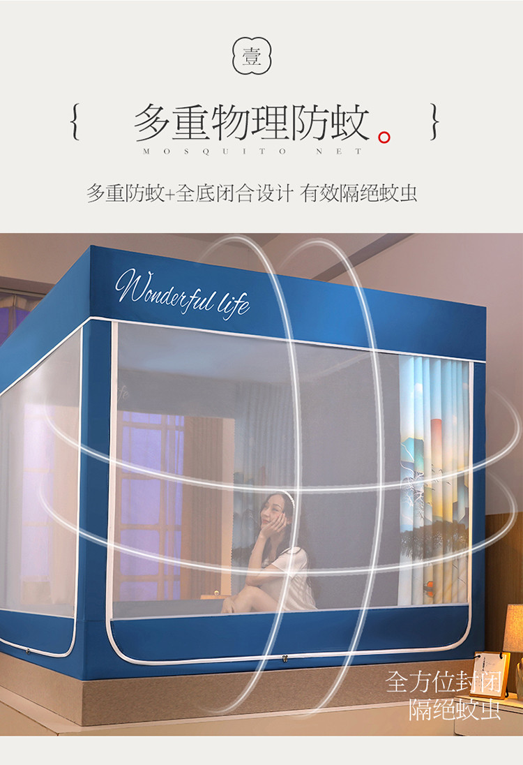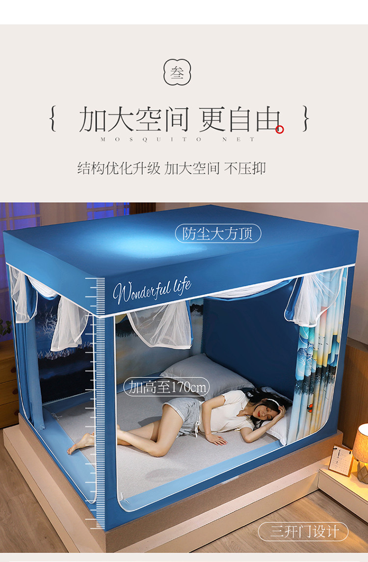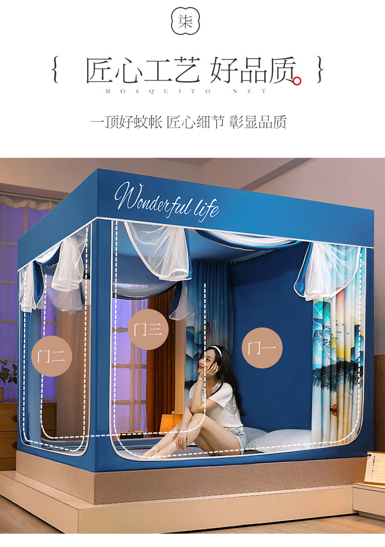(总)迪凡保罗蚊帐 2025新款2410三开门落地宫廷蚊帐,海岛蓝,皮红色,浅蓝灰,太湖绿,天空蓝,樱花粉