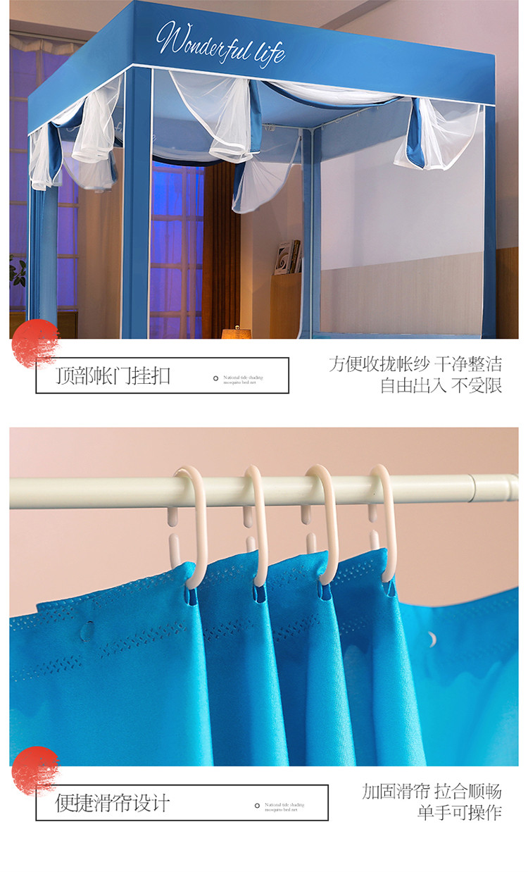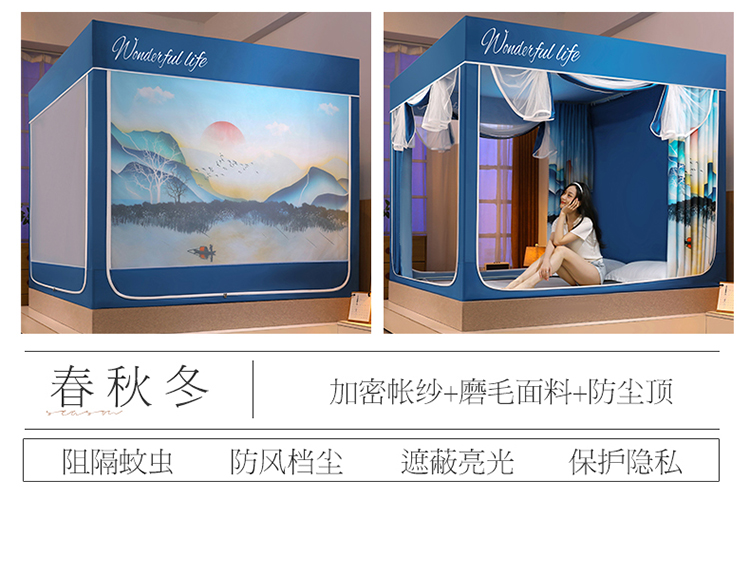 (总)迪凡保罗蚊帐 2025新款2604冬季保暖夹棉纯色遮光帘蚊帐全底回底双排储物袋,蓝灰色,樱花粉,紫色,太湖绿,天蓝色,驼色