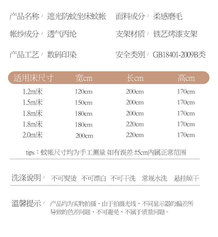 (总)迪凡保罗蚊帐 2025新款2506纯色夹棉遮光保暖坐床蚊帐,粉玉,深灰,太糊绿,驼色,月光灰