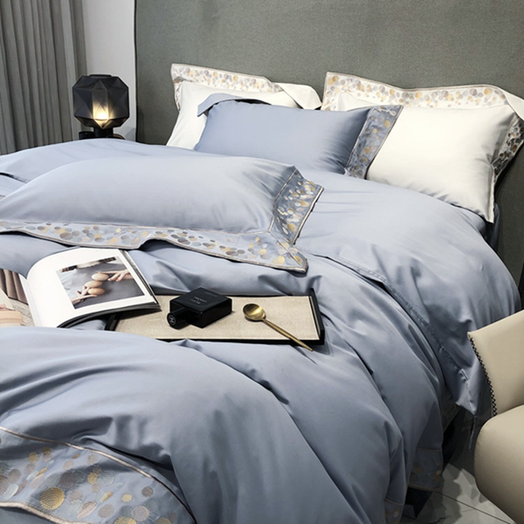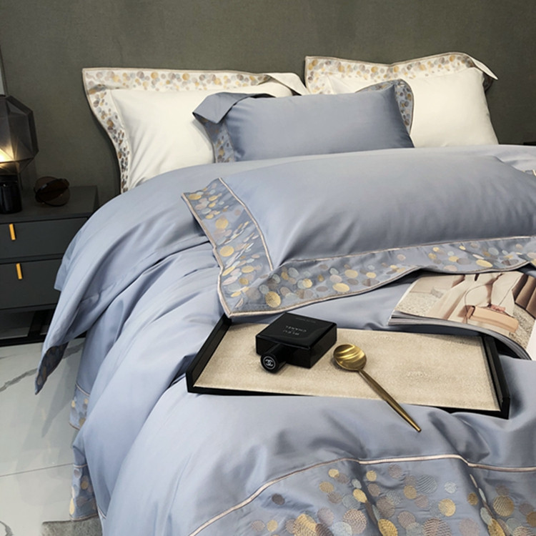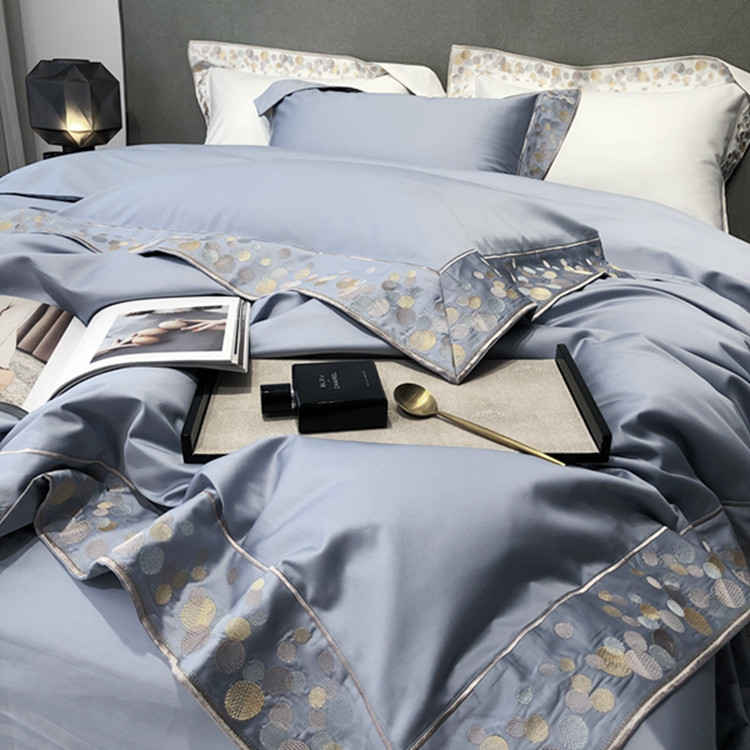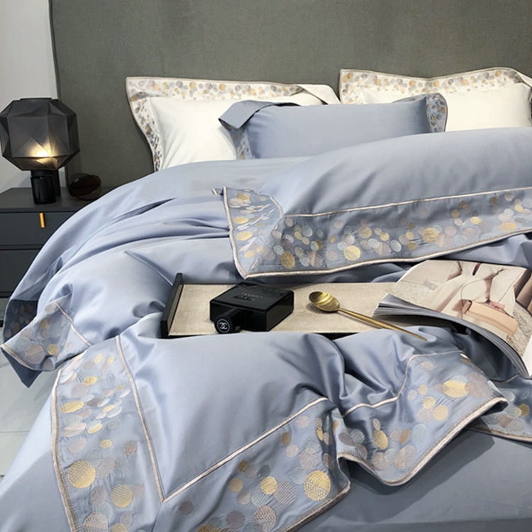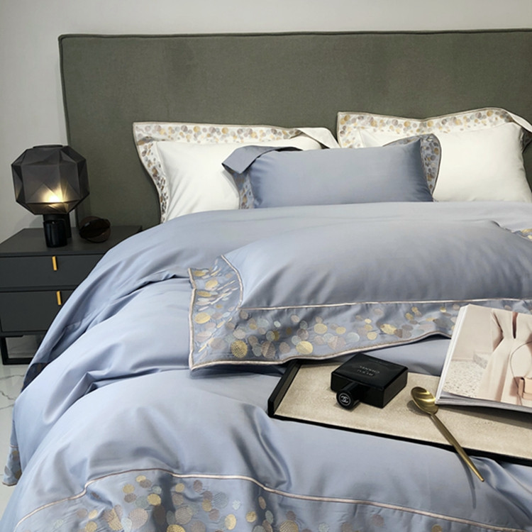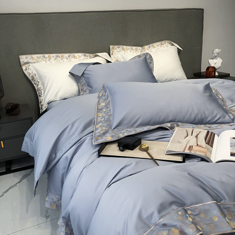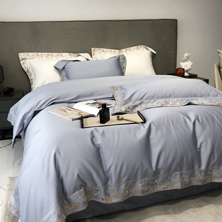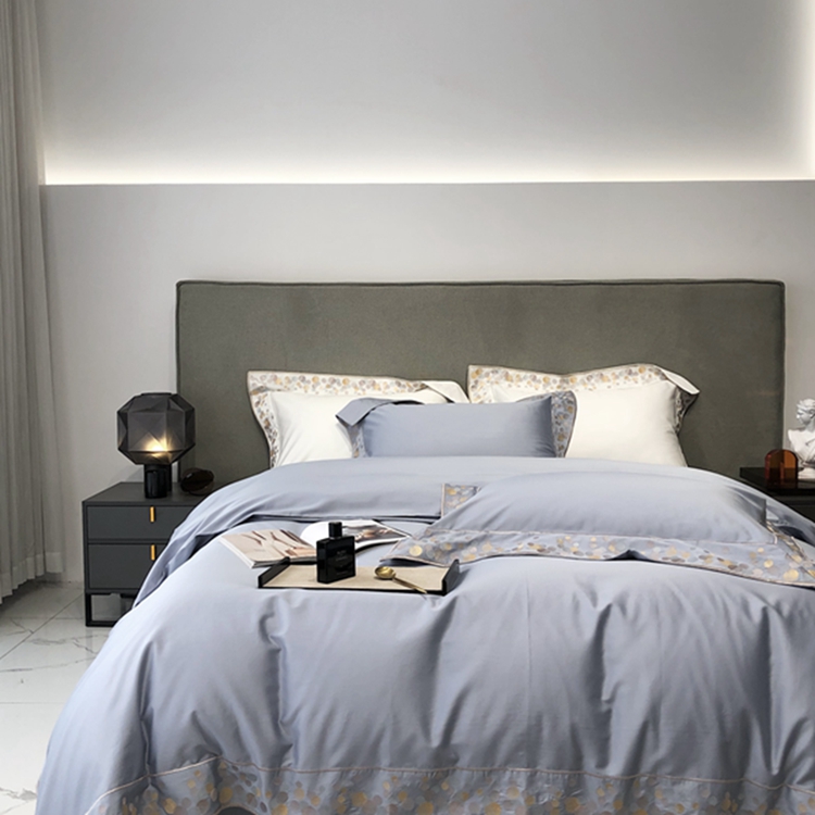 商品名称:太古汇 2022新款长绒棉高定绣花四件套 蓝灰
