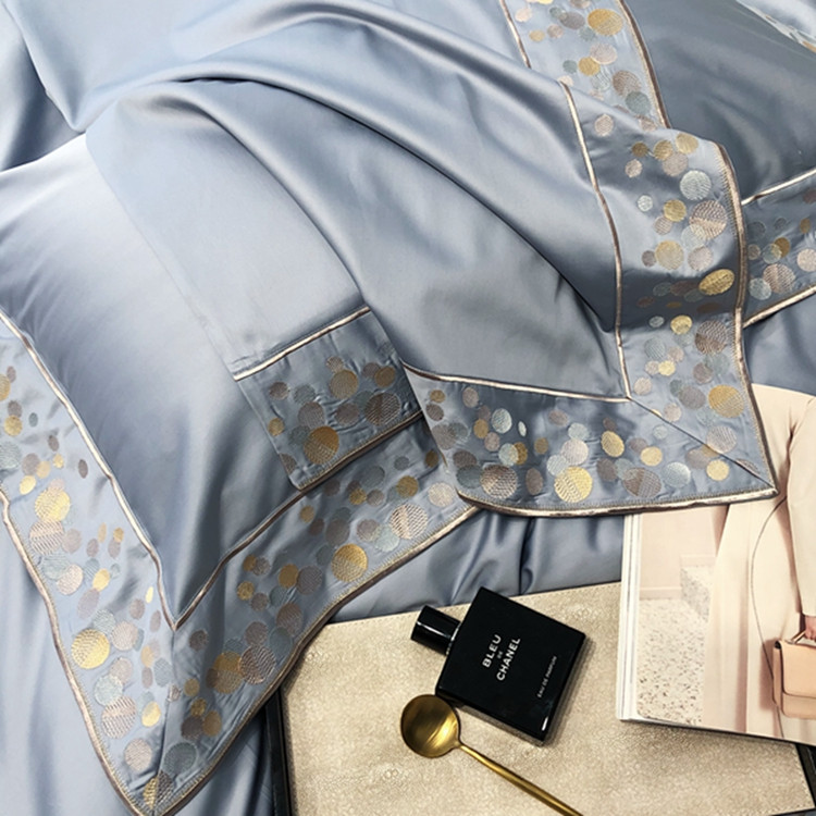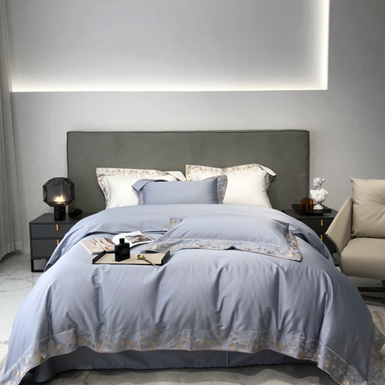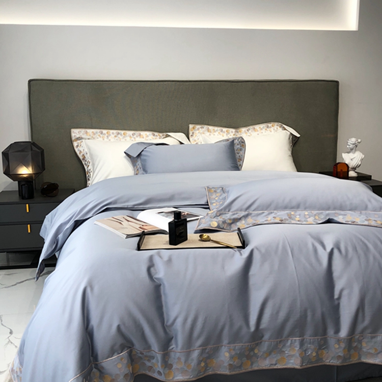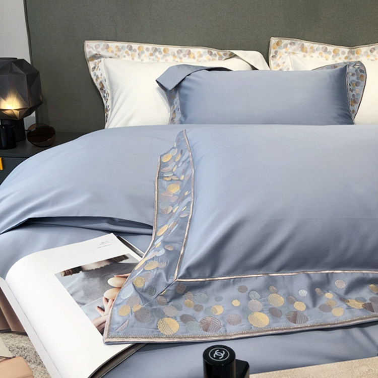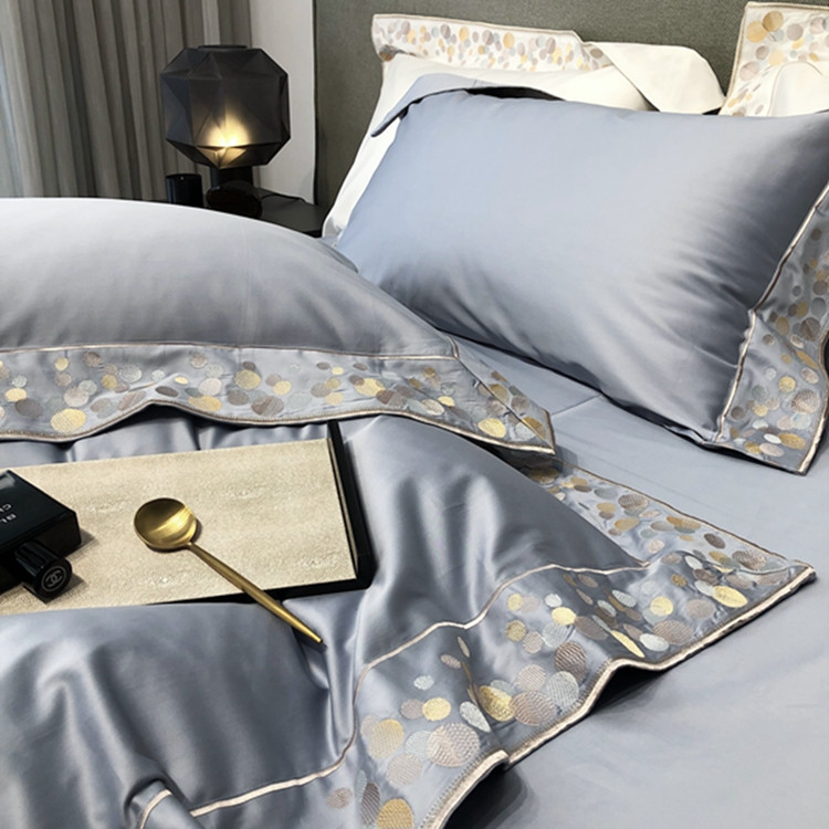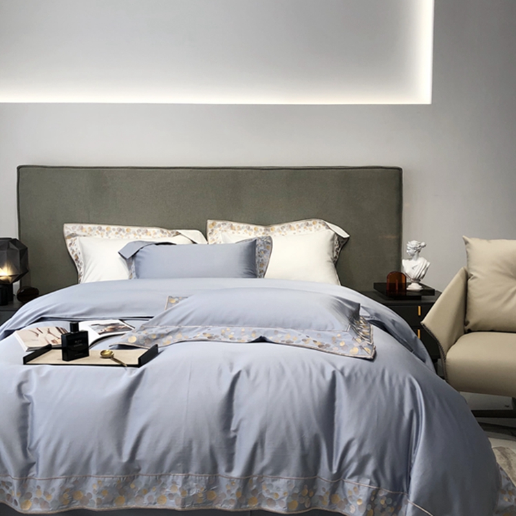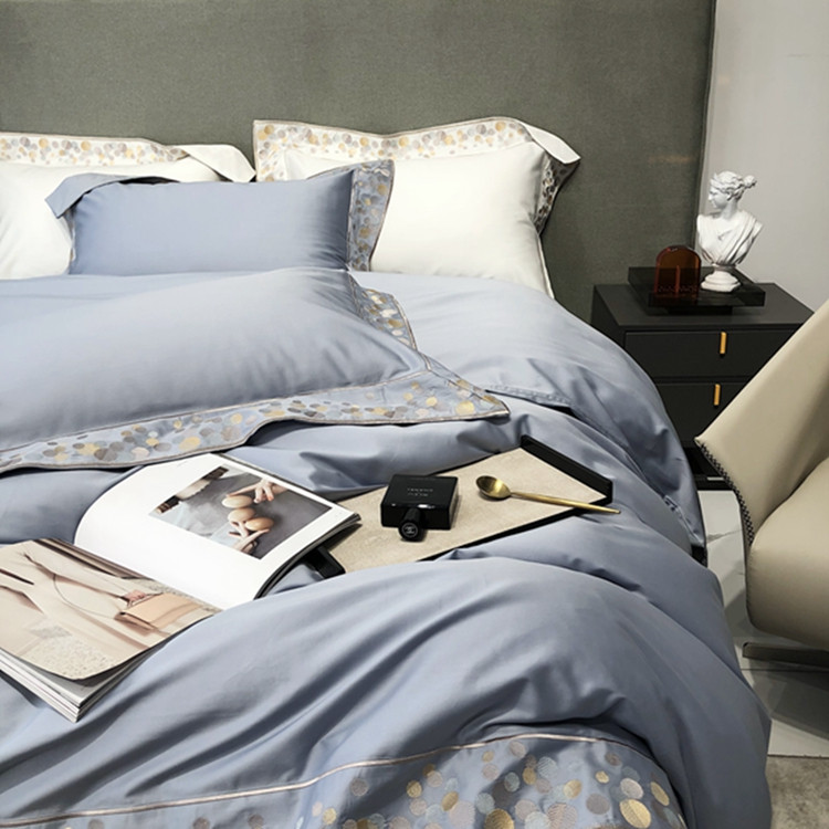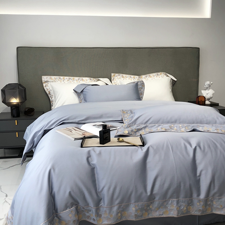 商品名称:太古汇 2022新款长绒棉高定绣花四件套 蓝灰