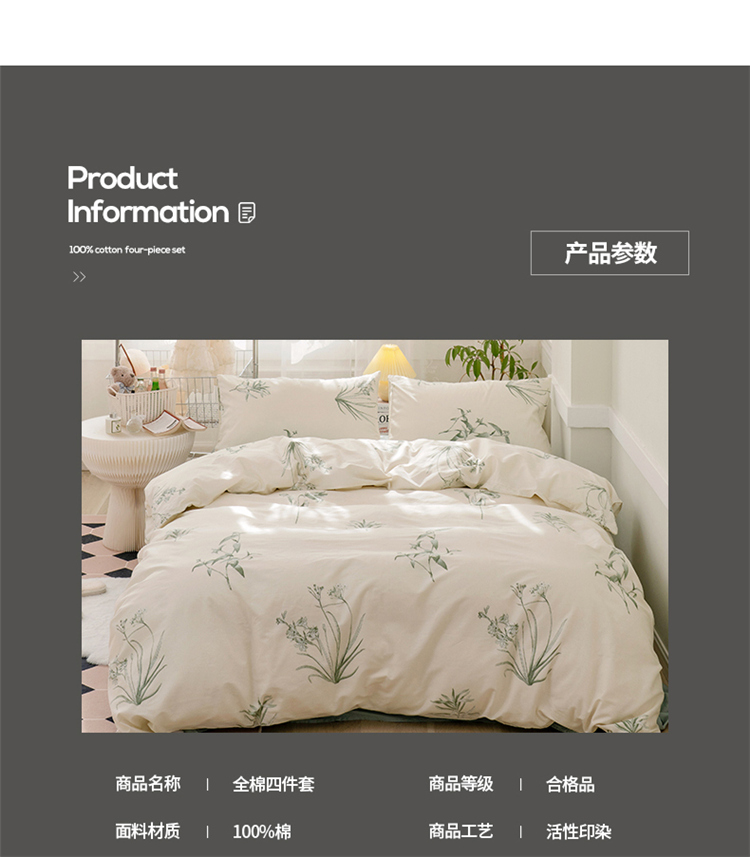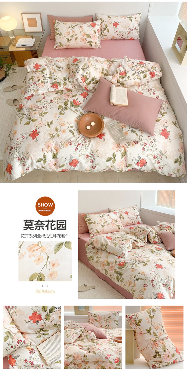商品名称:(总)窝米 2022新款全棉印花活性四件套花卉系列