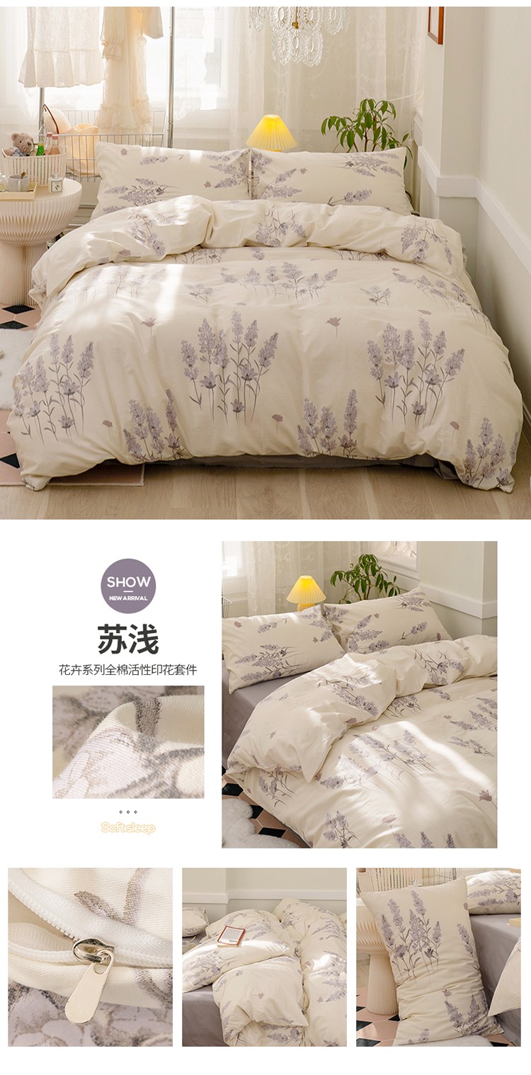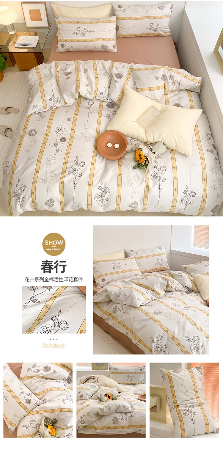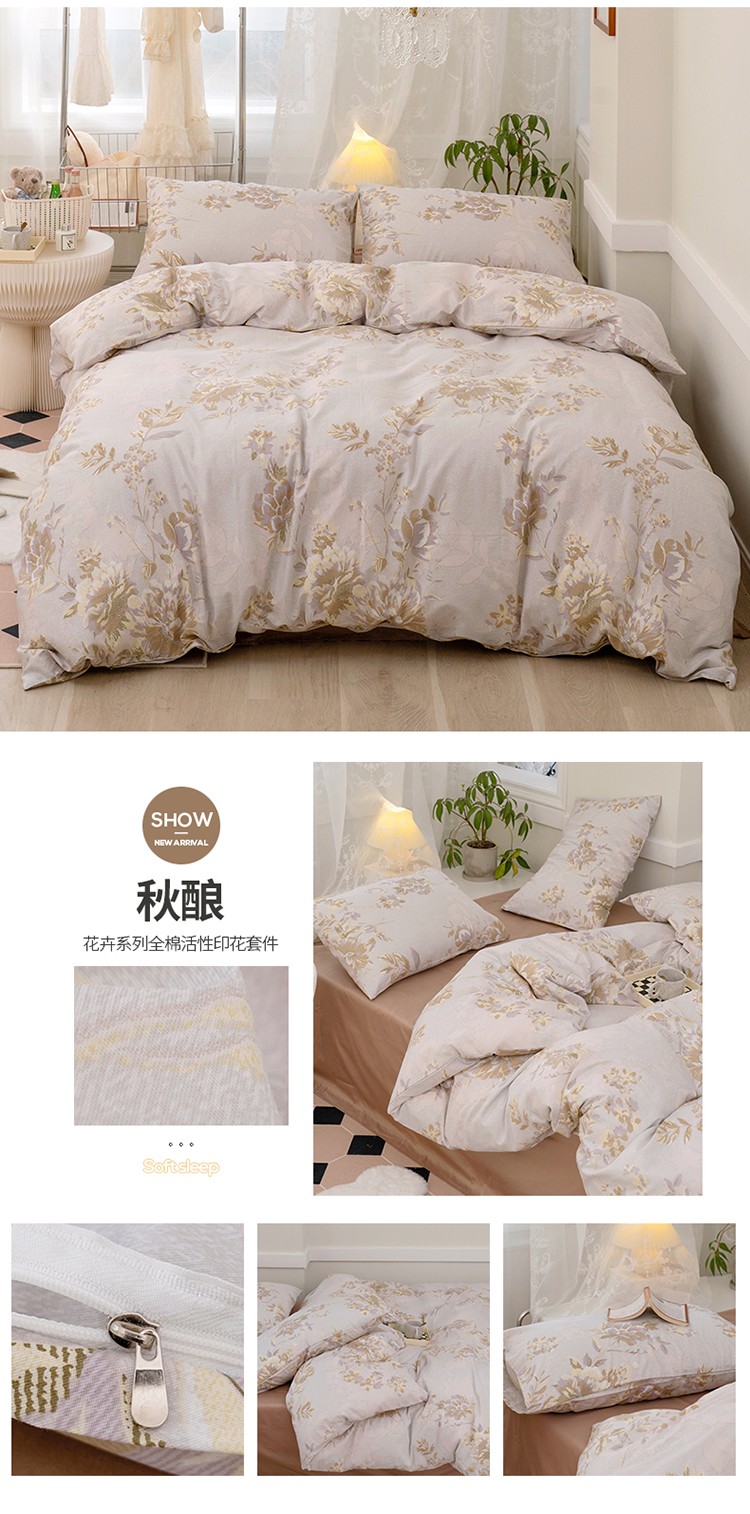 (总)窝米2022新款13370全棉四件套花卉系列,春风里,青柚,秋收,水波纹米驼,水波纹炭黑,恬谧,夏花,云溪红,云溪黄
