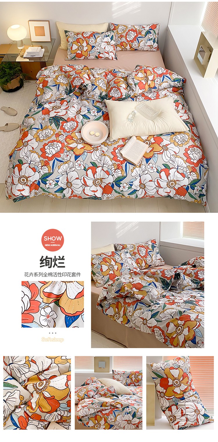 (总)窝米 2022新款全棉印花活性四件套花卉系列