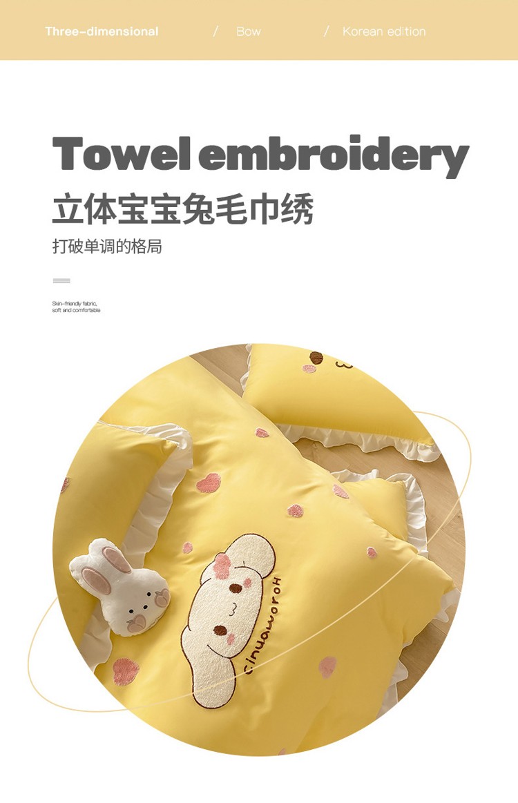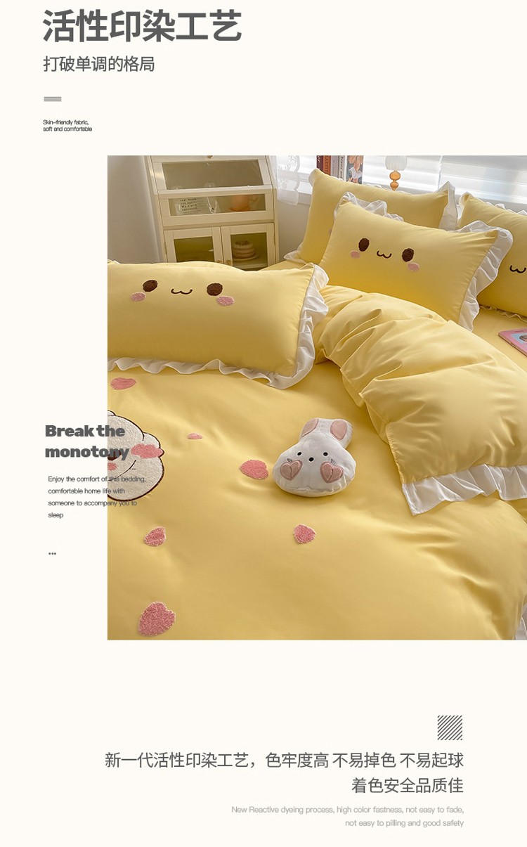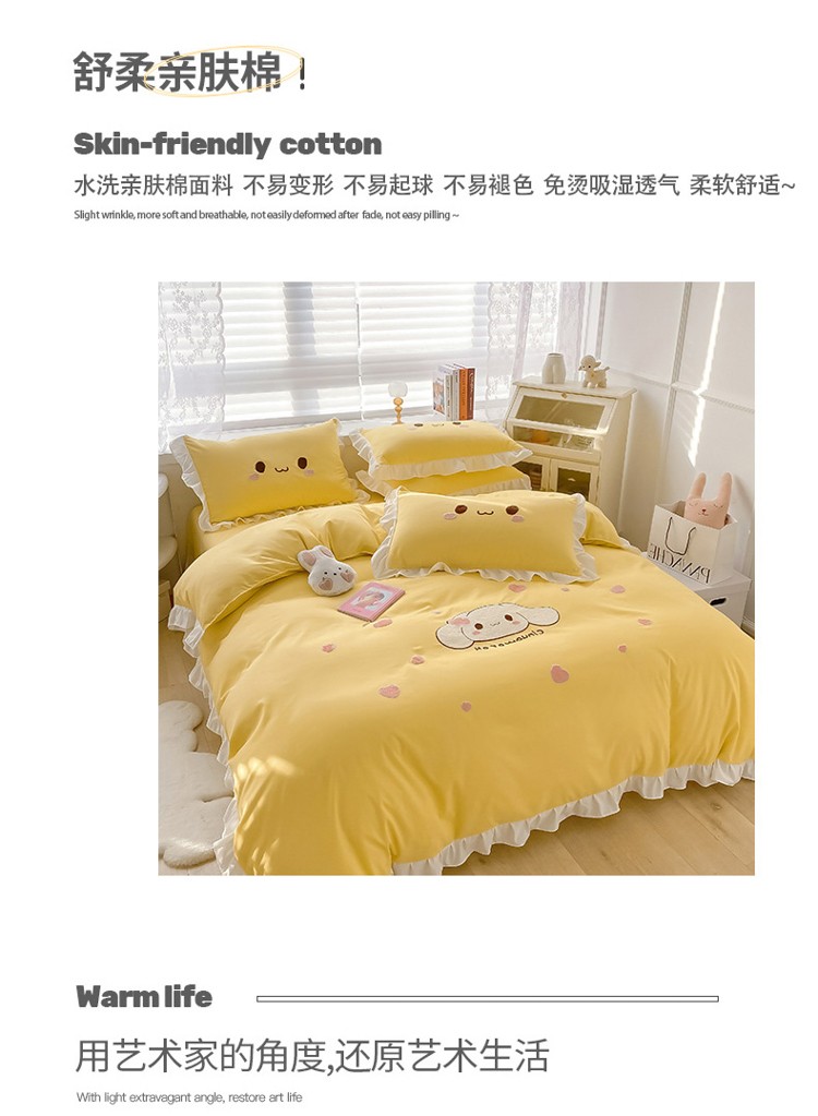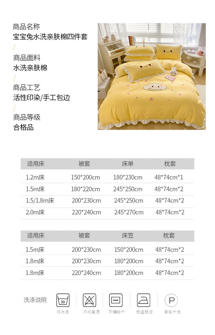 当前位置: 91家纺网 > 商品网购 > 床品套件 > 四件套 > 水洗棉四件套 > 易禾 2022新款小清新水洗亲肤棉四件套 宝宝兔-黄