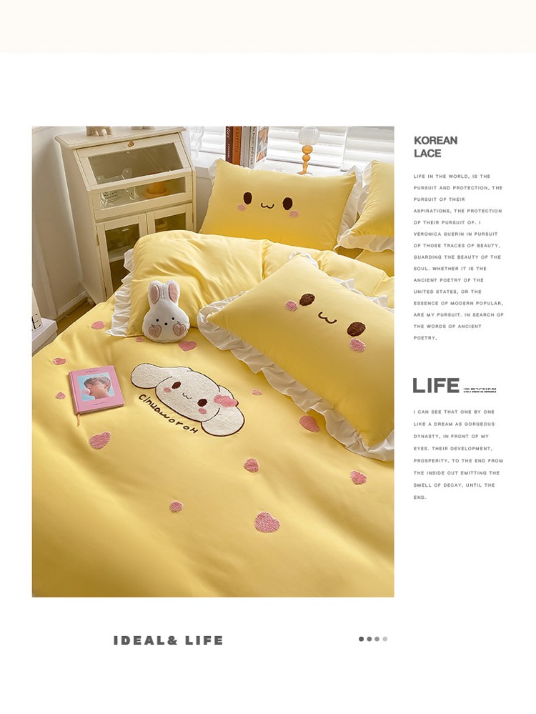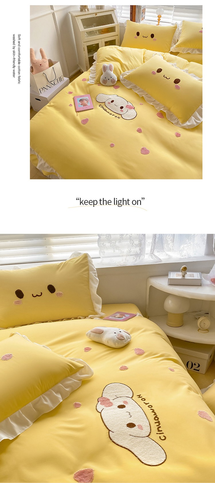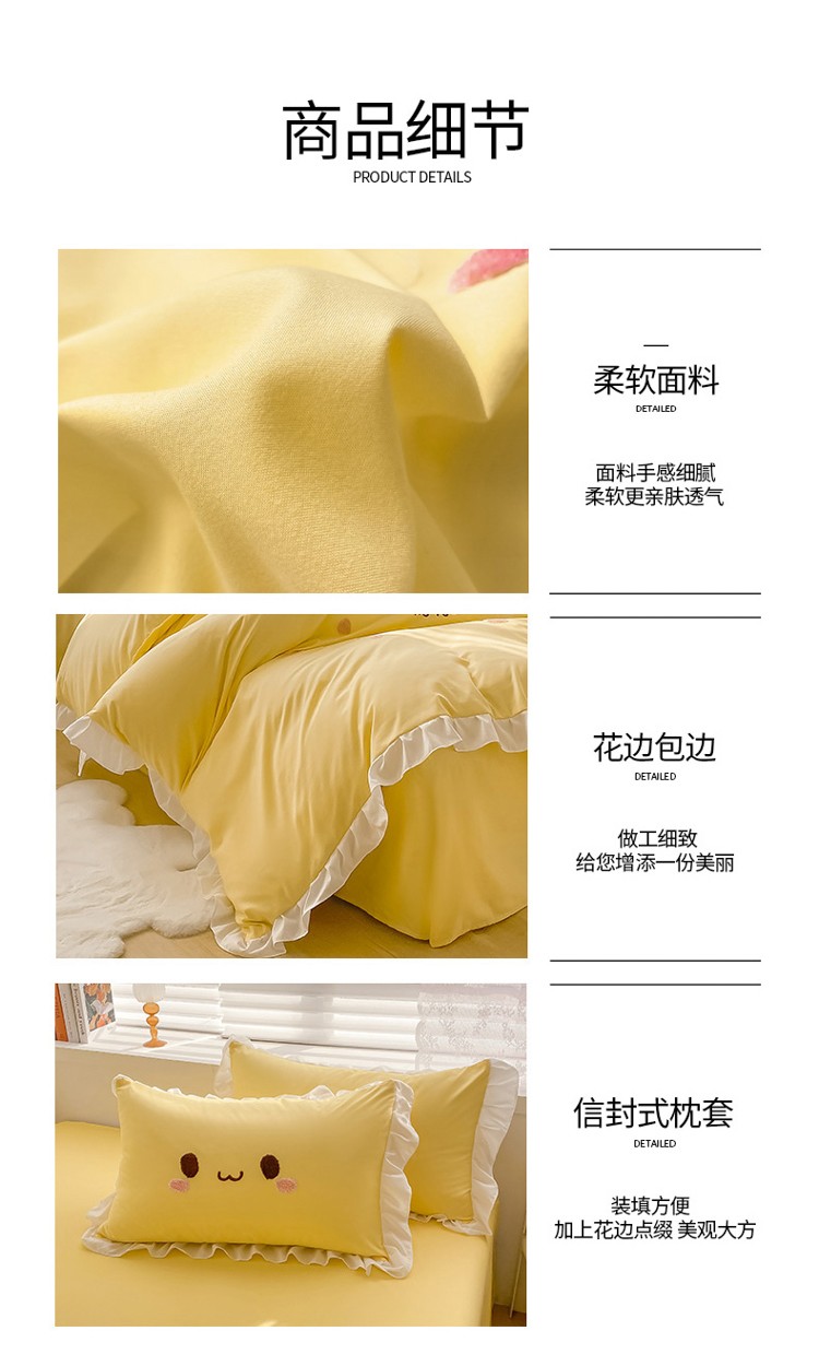 当前位置: 91家纺网 > 商品网购 > 床品套件 > 四件套 > 水洗棉四件套 > 易禾 2022新款小清新水洗亲肤棉四件套 宝宝兔-黄