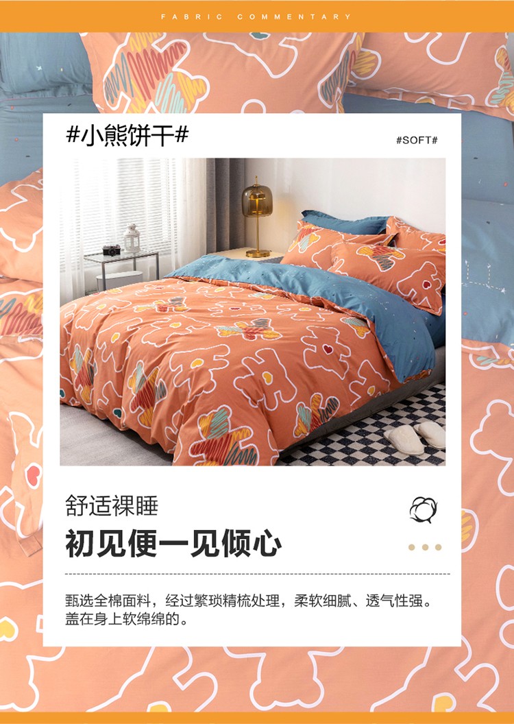 (总)星期三 2021新款5月新花型全棉四件套(加老板微信有会员价),太空熊,春鸟-兰,格调-绿,曼妮熊,星际漫游,羽叶