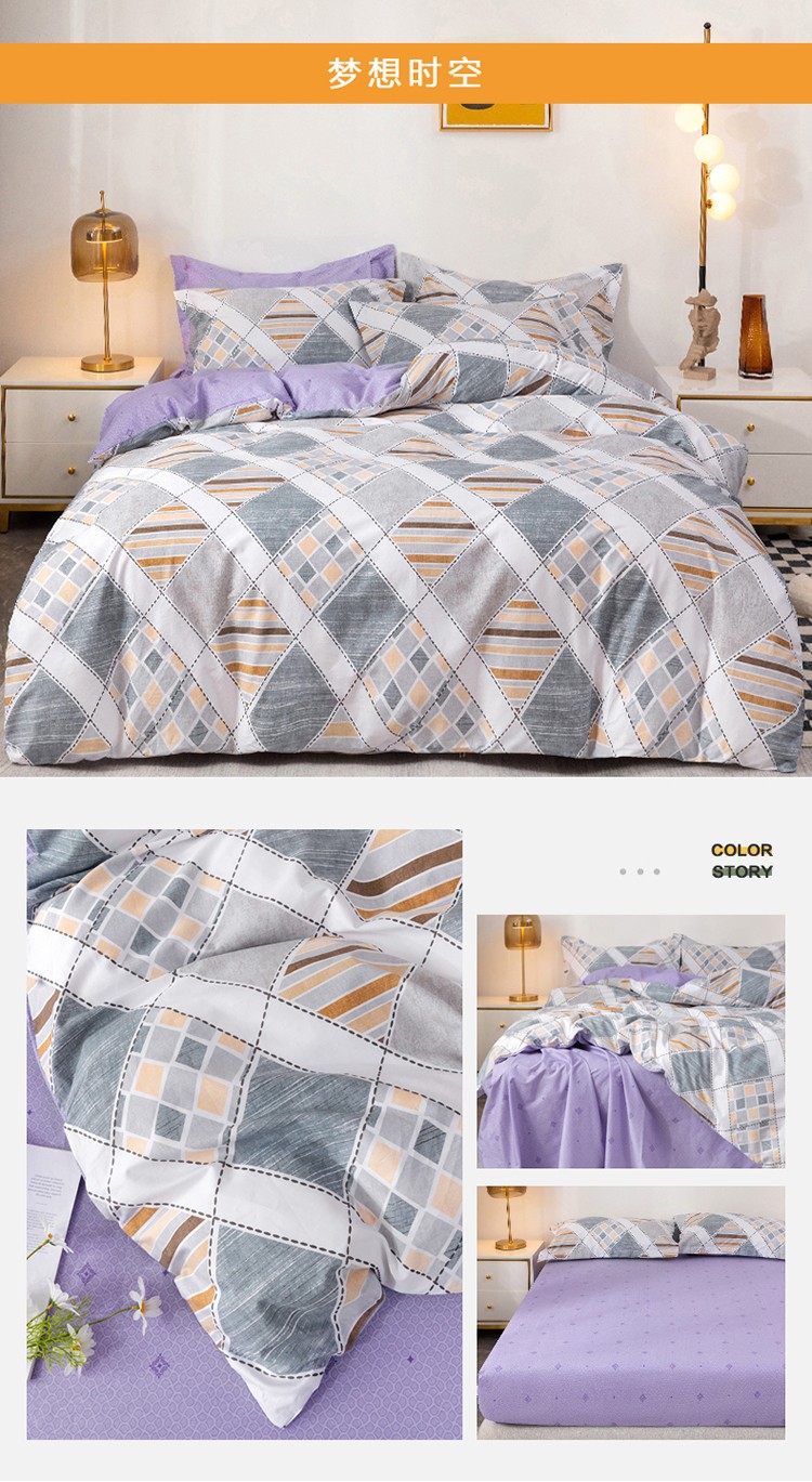 (总)星期三家纺 2021新款8月铂金全棉13372四件套(加老板微信有会员价),彩虹果,彩墨,若梦-紫,石头糖,向阳