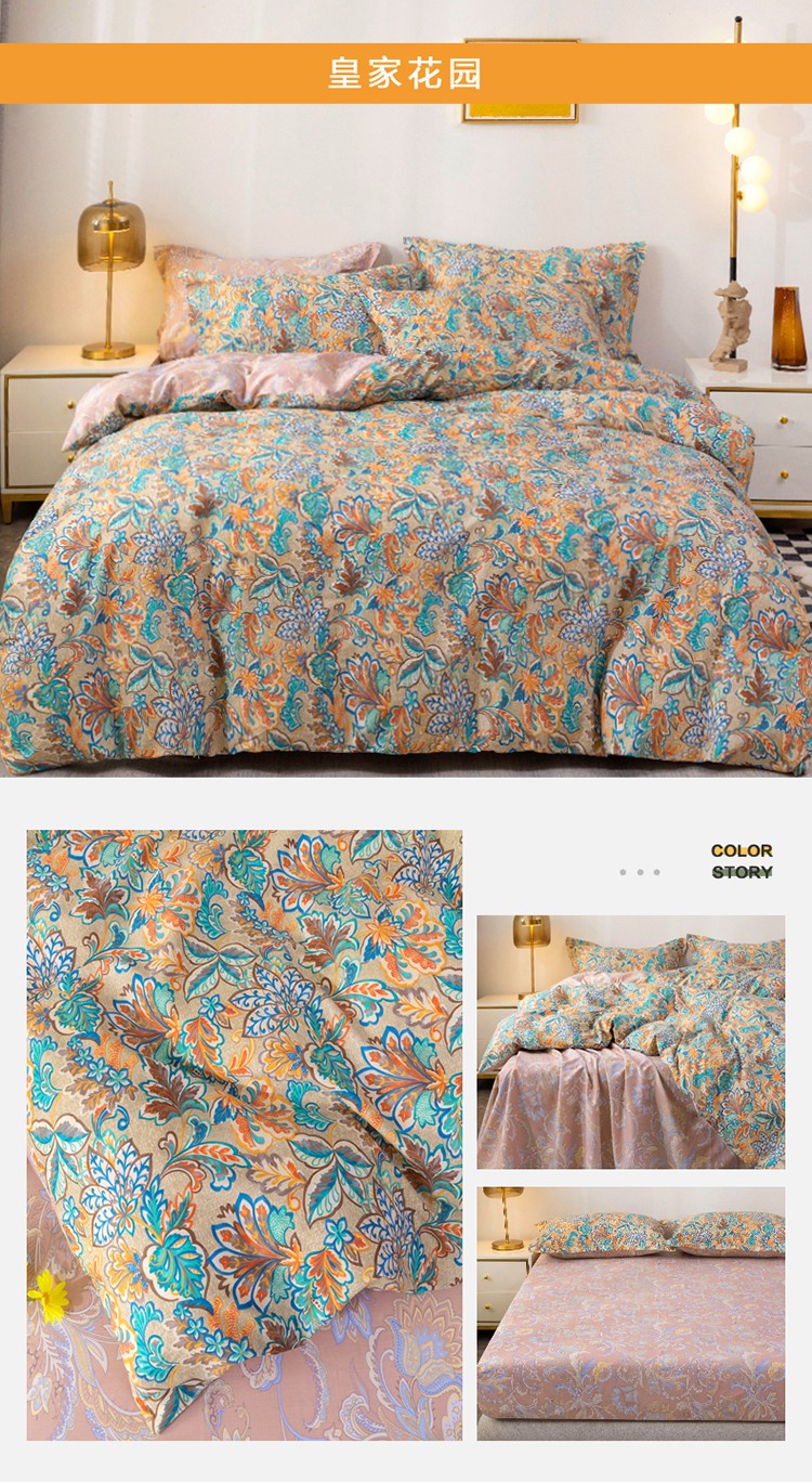 (总)星期三 2025年4月新款铂金全棉纯棉13372四件套 加微信有会员价,橙日幽香,花的旅途,花几度-绿,花佳境-咖,花枝草蔓,柔纱花影,棠影寻-粉,小雨录-紫,星际漫游