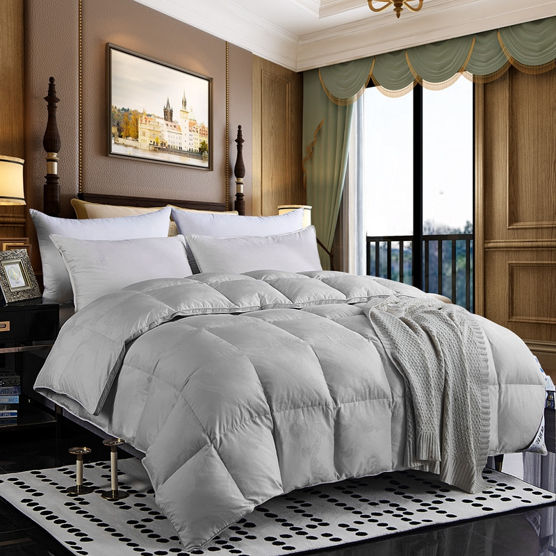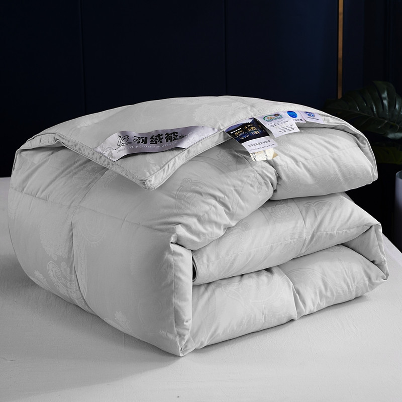 • 91家纺网 家纺一手货源 找家纺 羽仙子2023新款双层大提花羽绒被白鸭绒被被子 丽莎-灰色