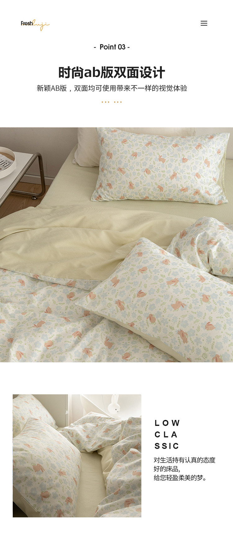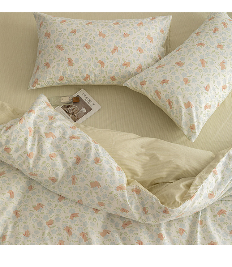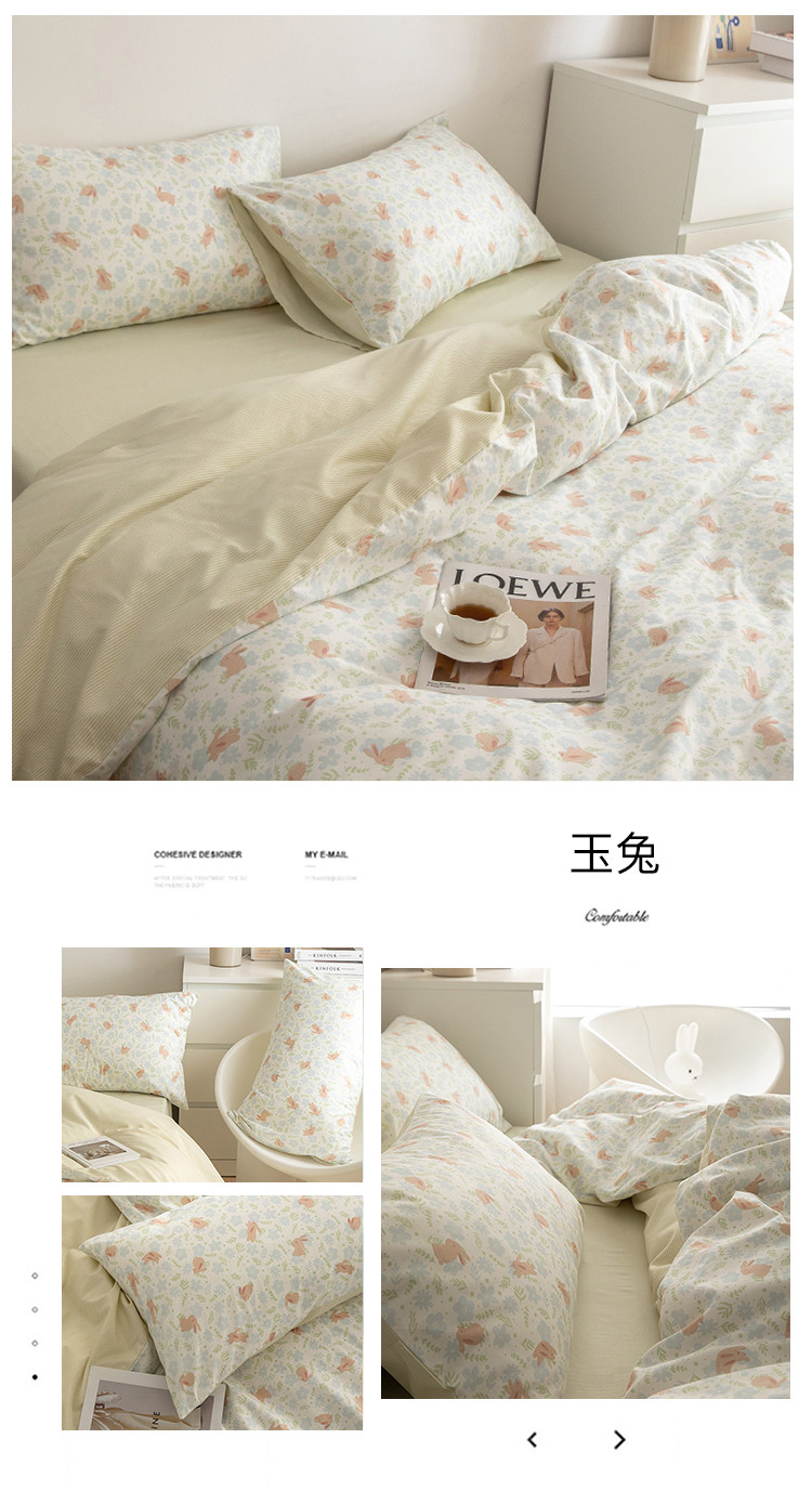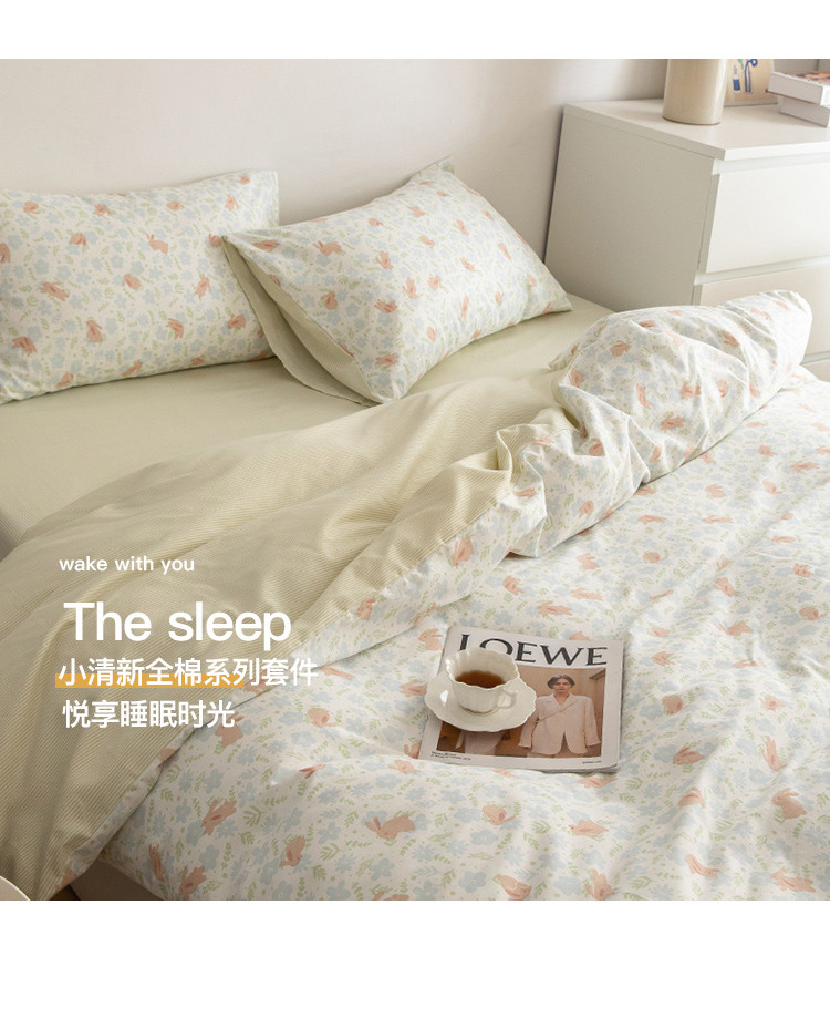 商品名称:绫韵 2022新款田园小清新全棉四件套春半梦花系列 玉兔