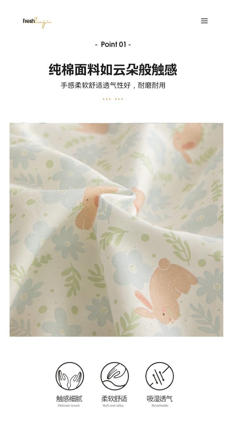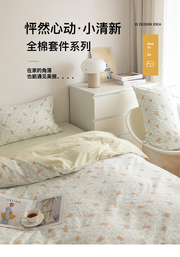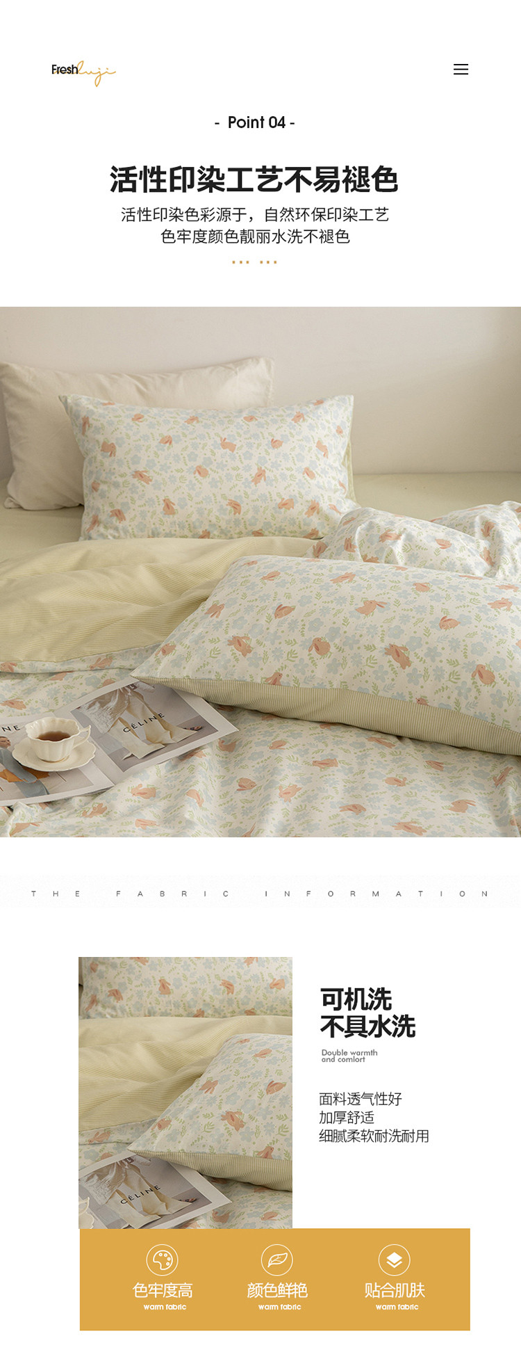 商品名称:绫韵 2022新款田园小清新全棉四件套春半梦花系列 玉兔