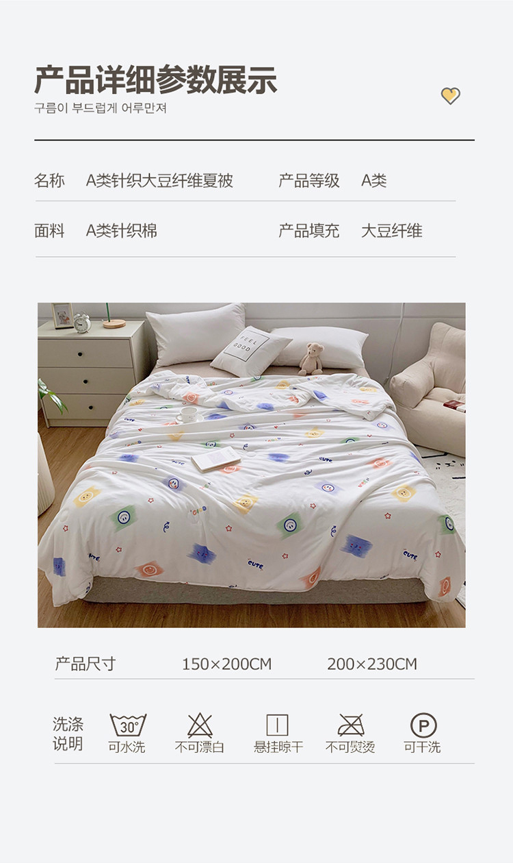 商品名称:佰亿莱 2024新款针织大豆纤维夏被 缤纷笑脸