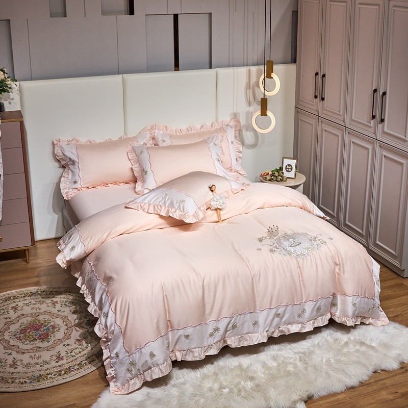 (总)星尚家纺 2024新款加厚保暖全消光牛奶绒夹棉床裙四件套-玫瑰之恋,粉玉,寐紫,浅蓝,水绿