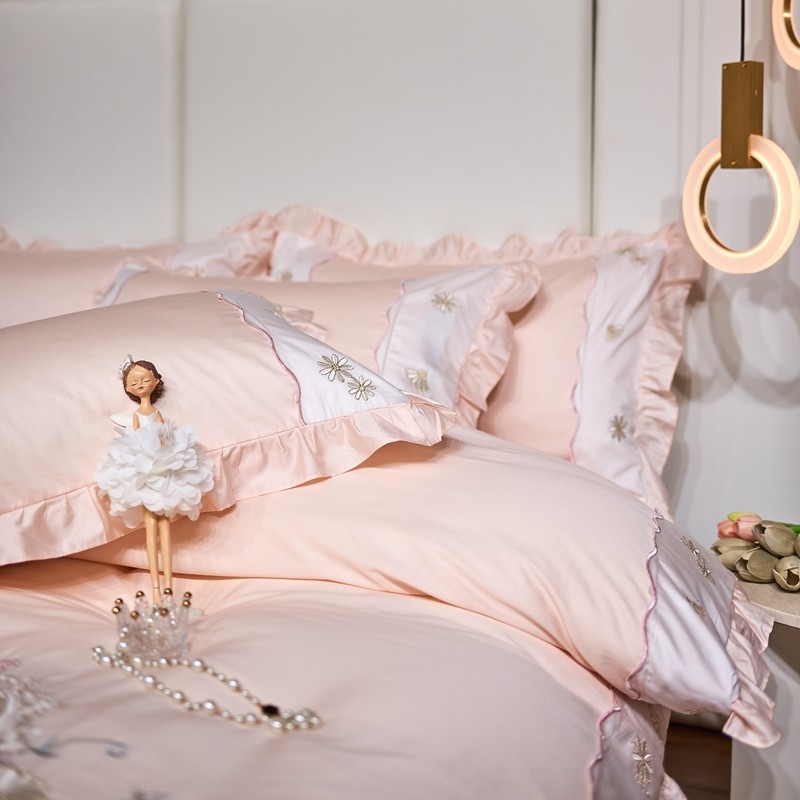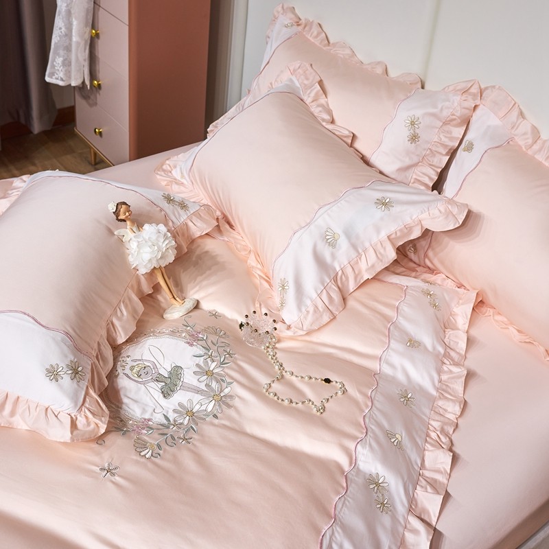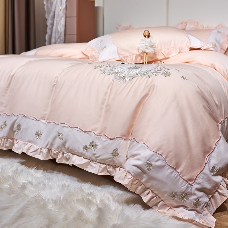 (总)星尚家纺 2024新款全消光230g牛奶绒刺绣保暖四件套-花漾,晨雾绿,豆沙粉,樱花粉