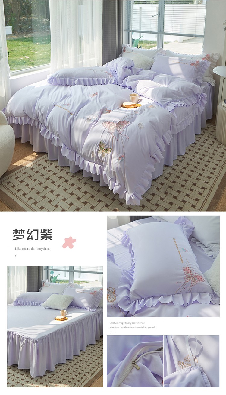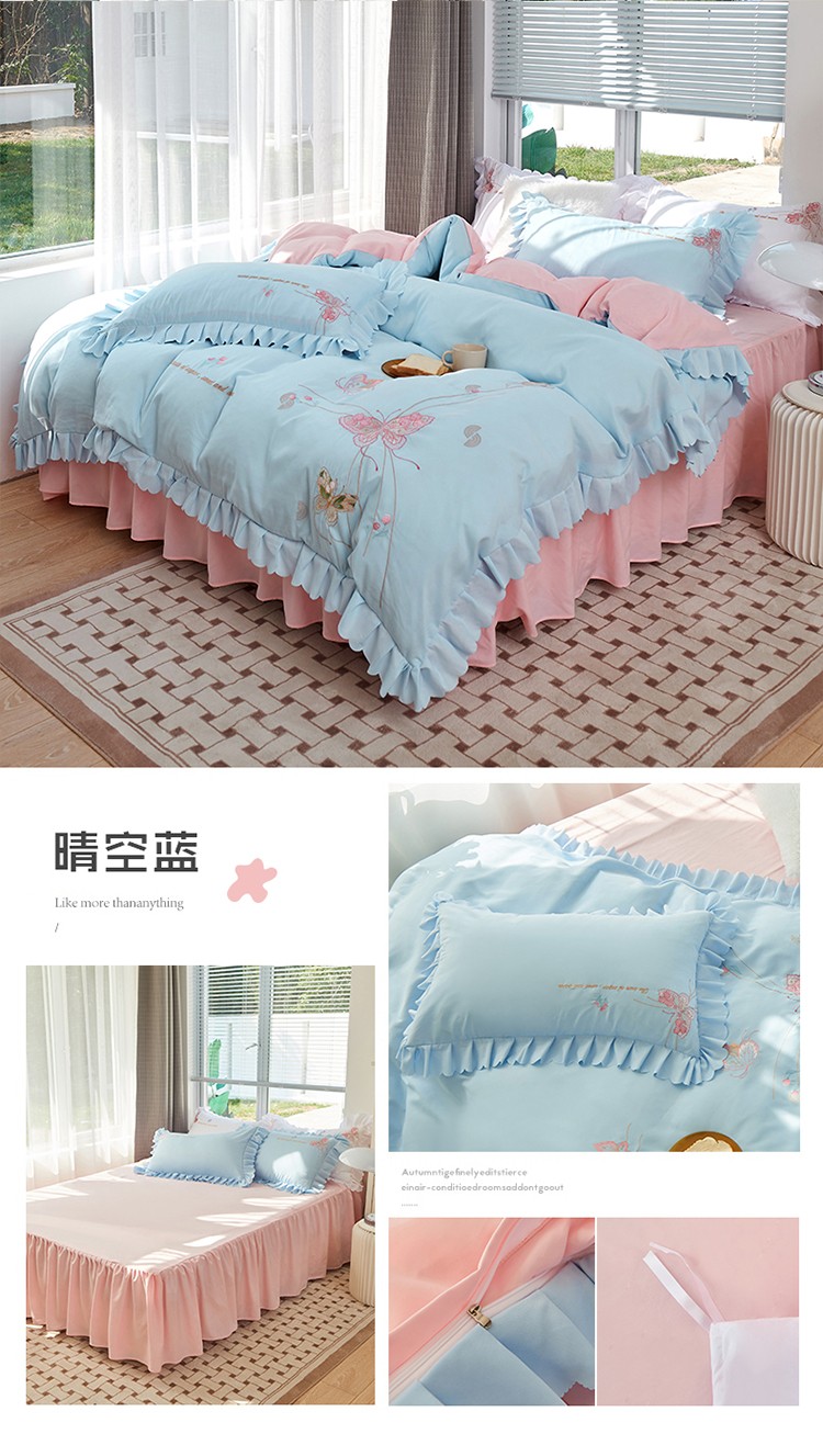 (总)包小包 2024春夏新款韩版蝶舞系列臻丝棉四件套,粉白双拼,晴空蓝,芝芝桃桃,甜杏粉,清新桔,梦幻紫
