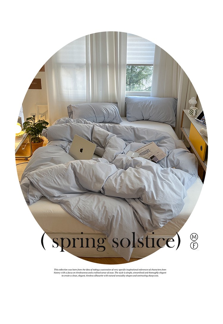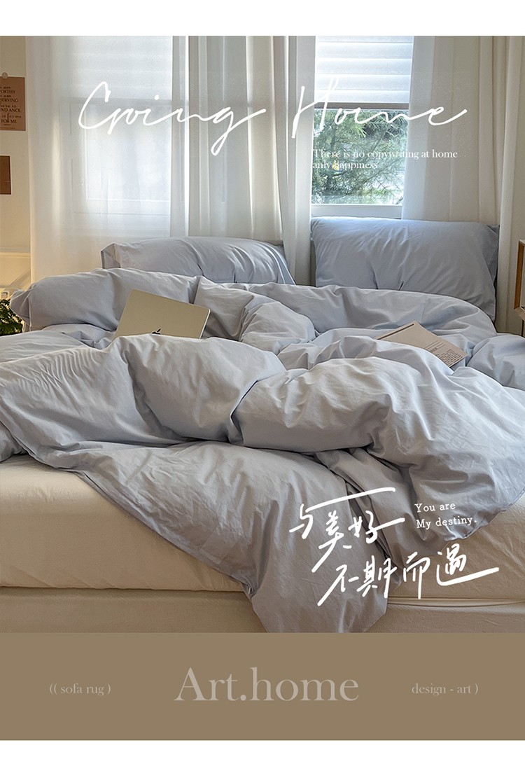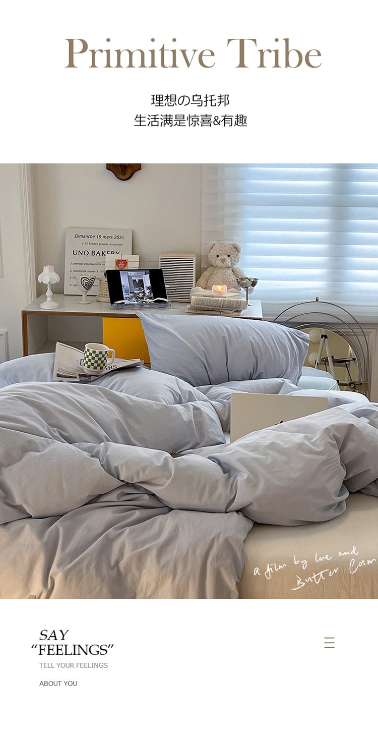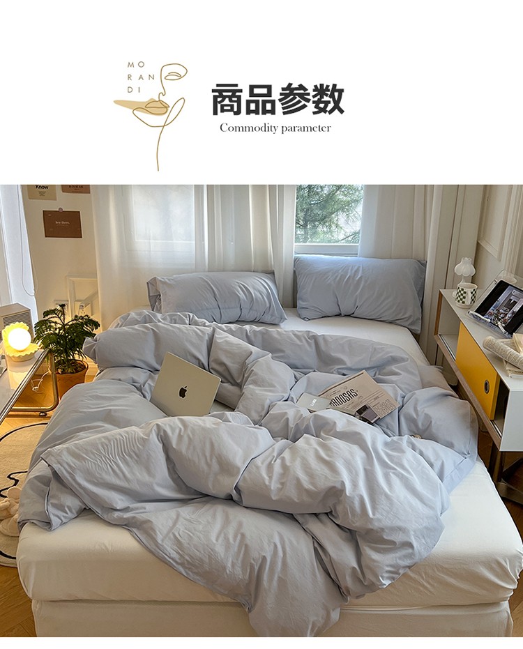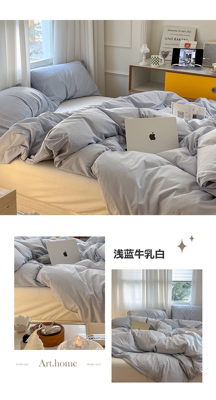 当前位置: 91家纺网 > 商品网购 > 床品套件 > 四件套 > 六巷胡同新款ins博主风纯色混搭四件套全棉水洗棉 浅蓝牛乳白