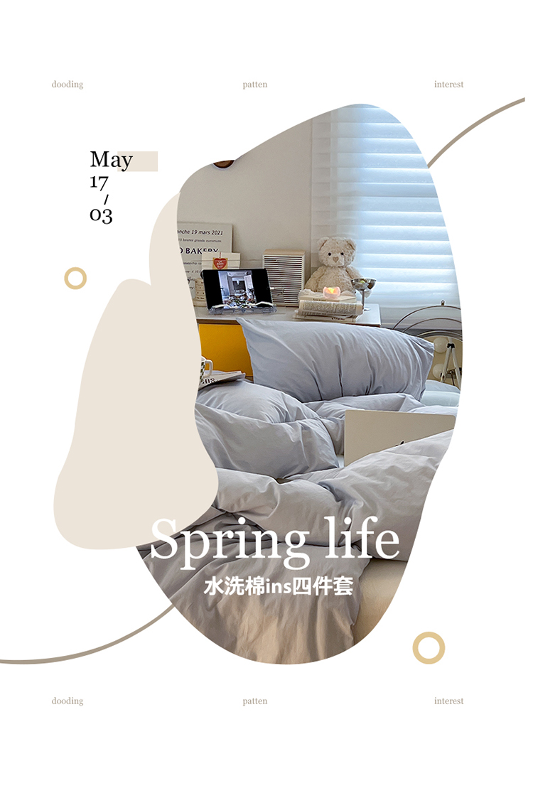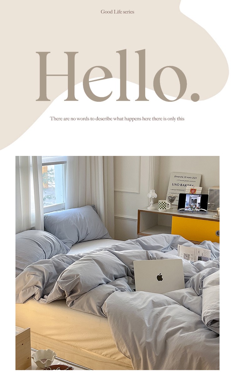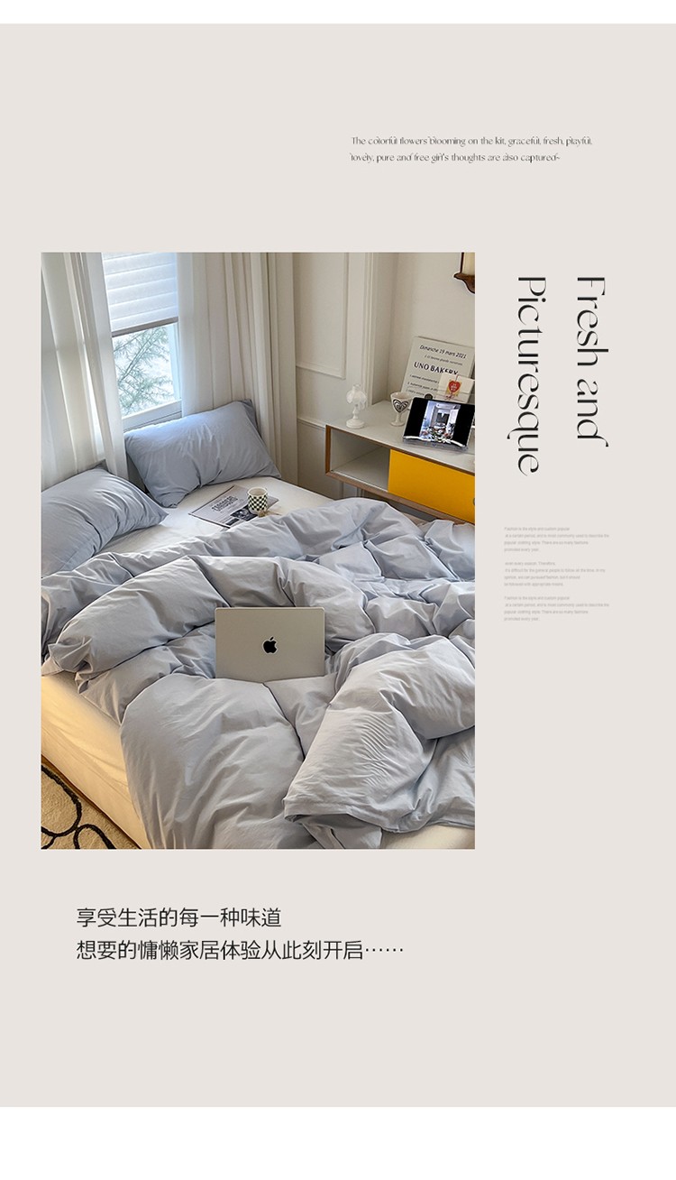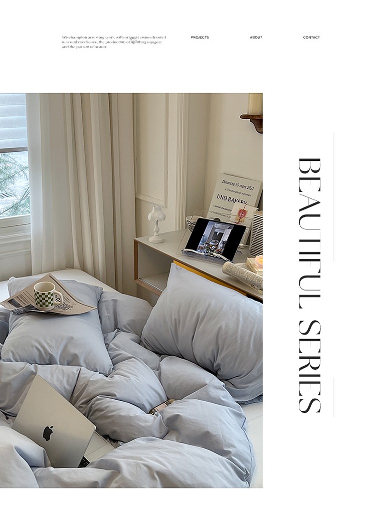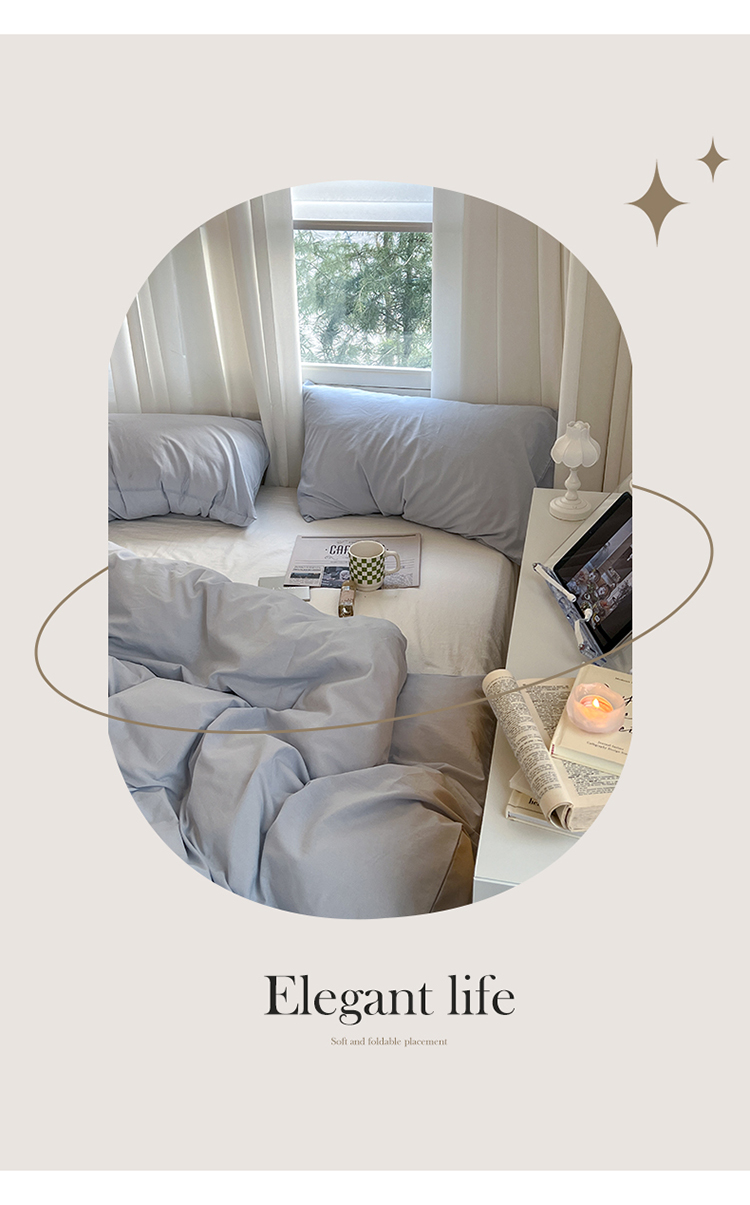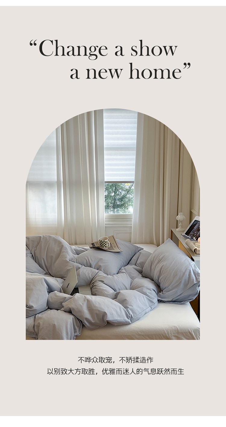 当前位置: 91家纺网 > 商品网购 > 床品套件 > 四件套 > 六巷胡同新款ins博主风纯色混搭四件套全棉水洗棉 浅蓝牛乳白