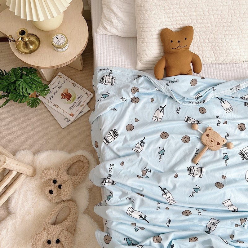 (总)星期八 2025新款婴儿裸睡级冰丝毯凉感毯,草莓小熊,动物乐园,格子熊粉,格子熊蓝,蝴蝶结兔,简笔画,腊肠狗,蓝饼干,苹果象,兔子屋,挖掘机,小恐龙,小鸭子