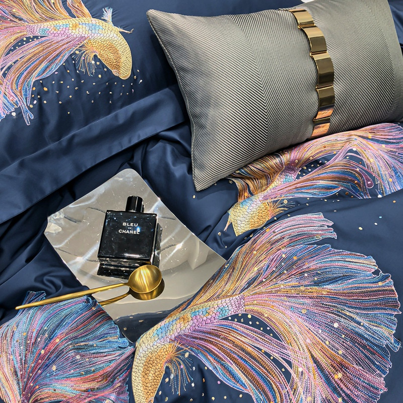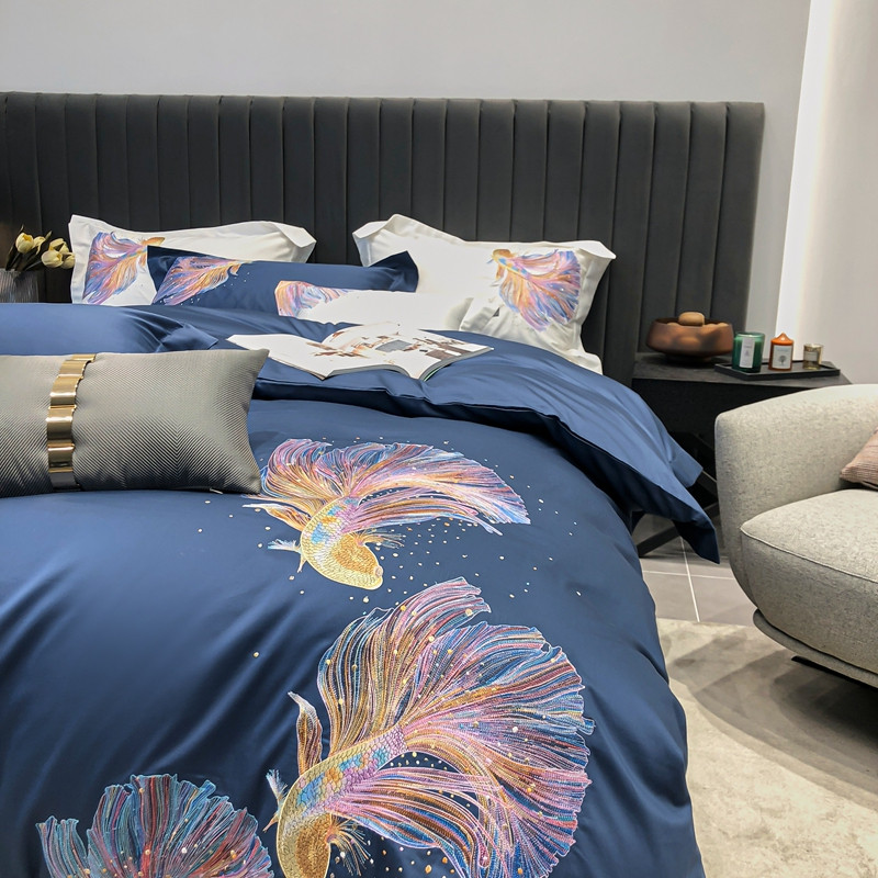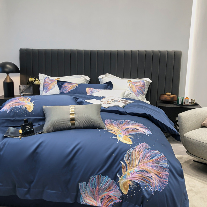 鹿班 2022新款100支长绒棉四件套-彩虹锦鲤 深蓝