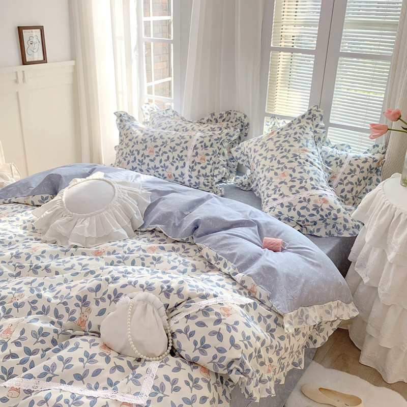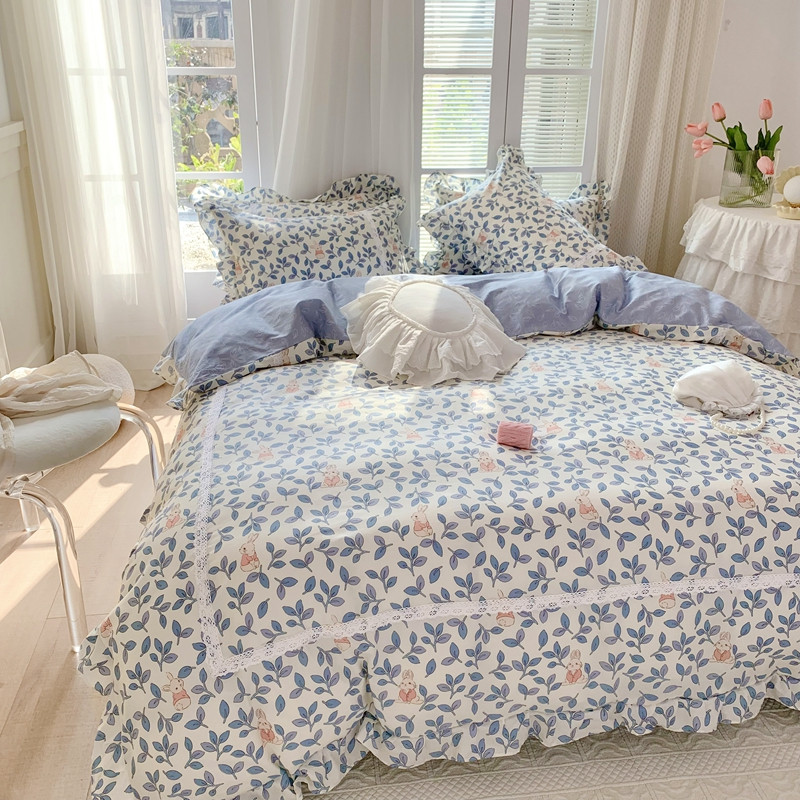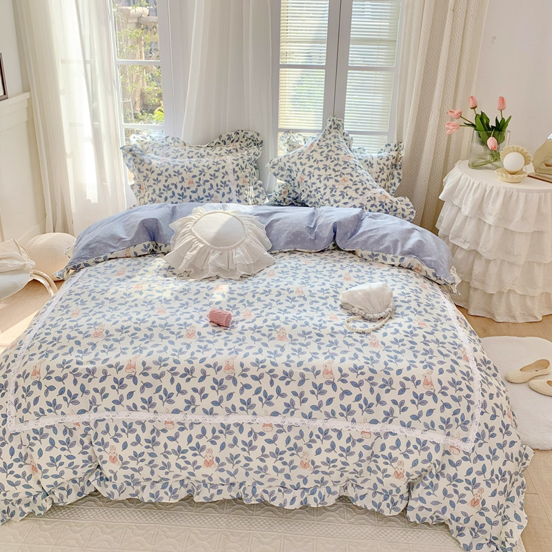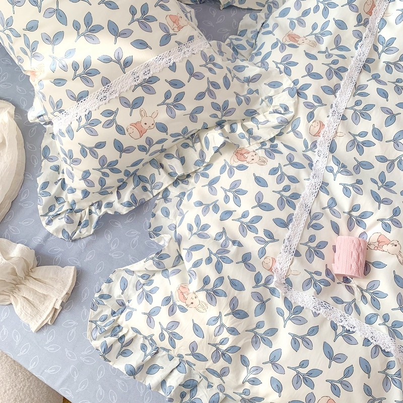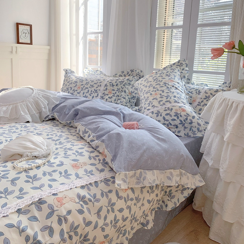 眠屿 2022新款全棉小碎花法式花边四件套 菲菲兔