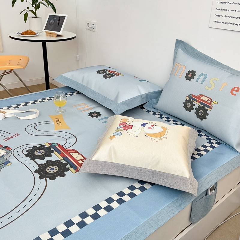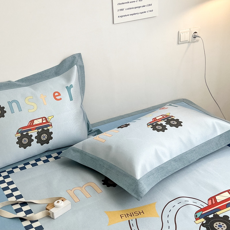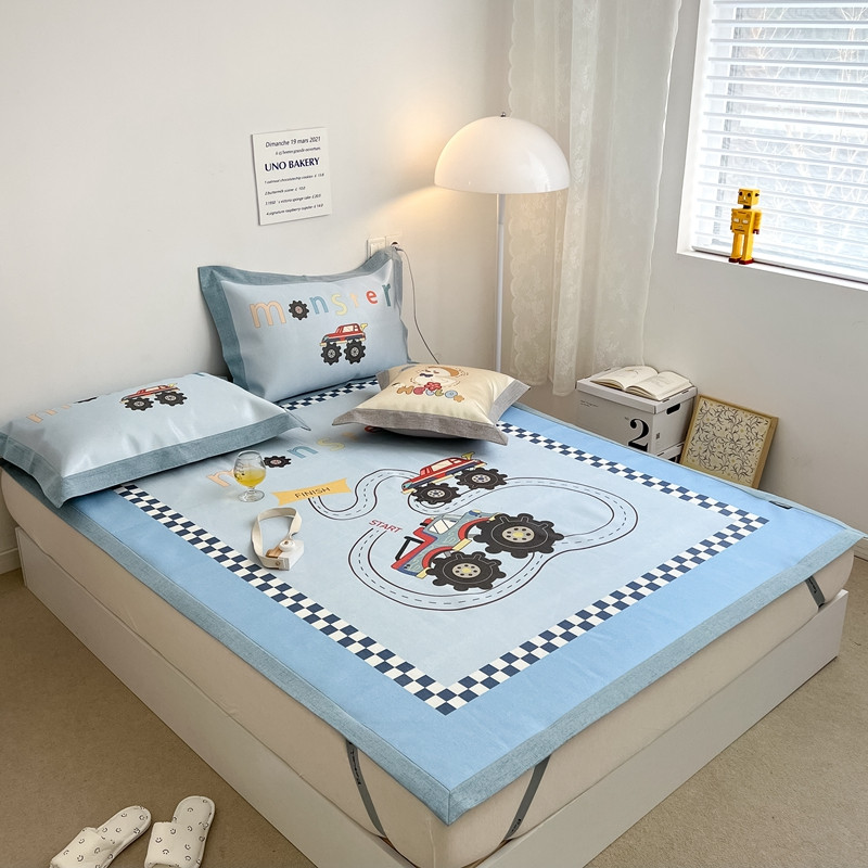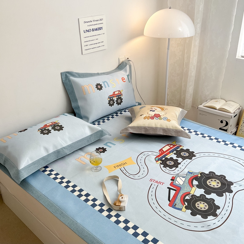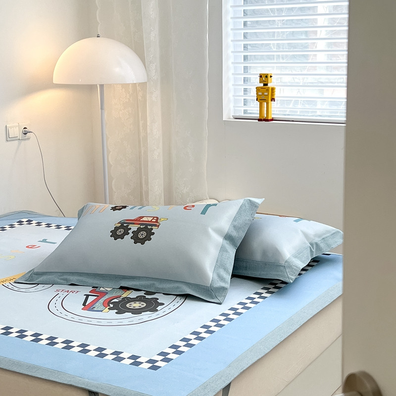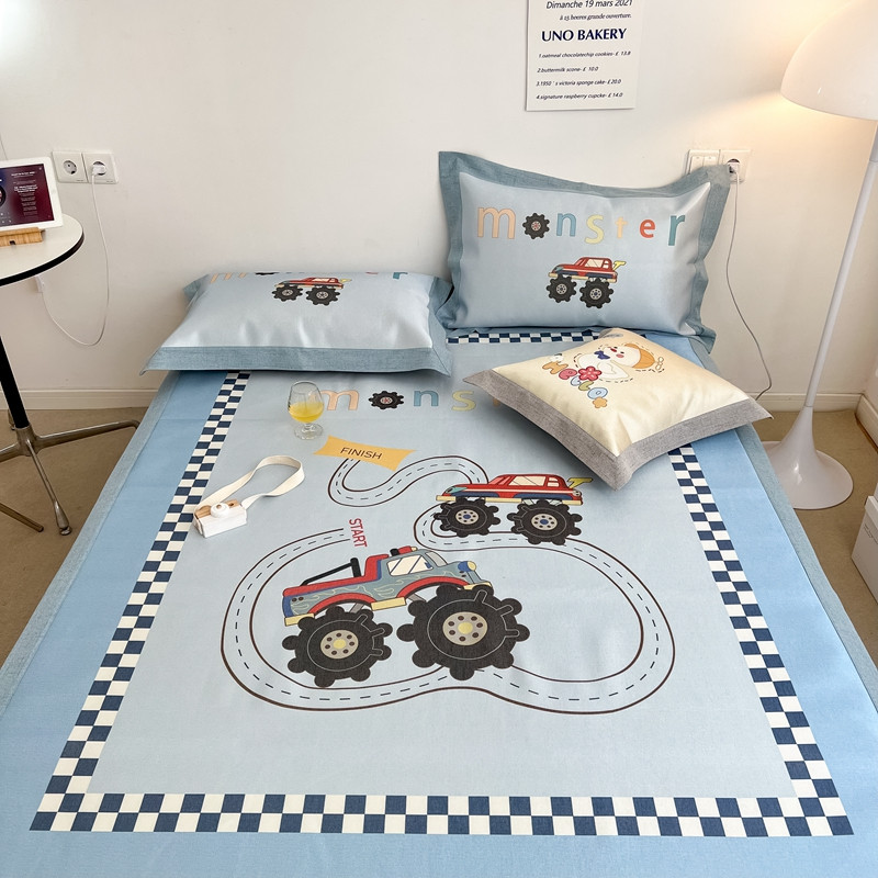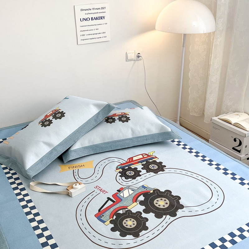 本希 2022新款水洗数码印花卡通简约冰丝席床席款 工程赛车