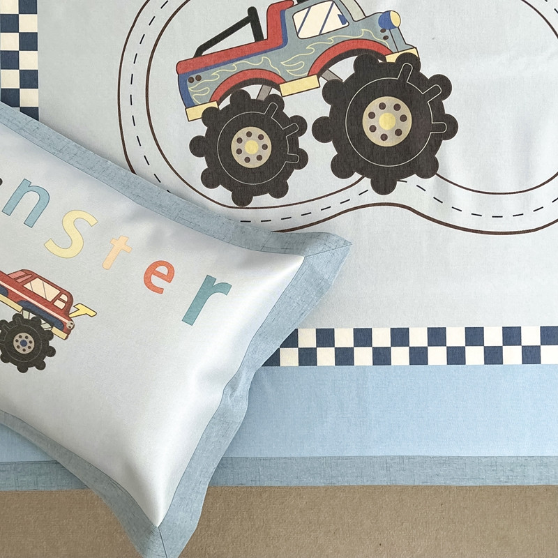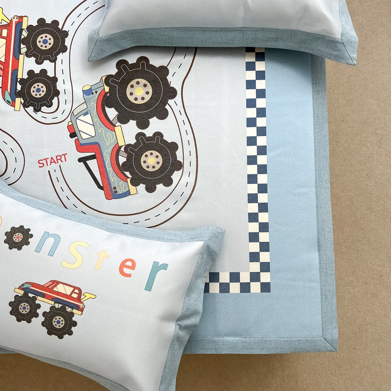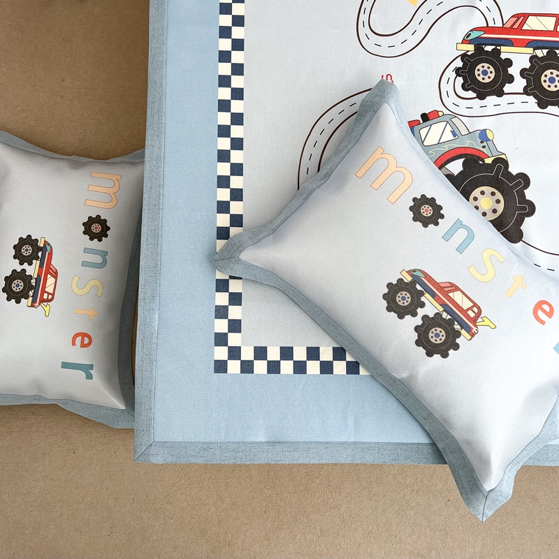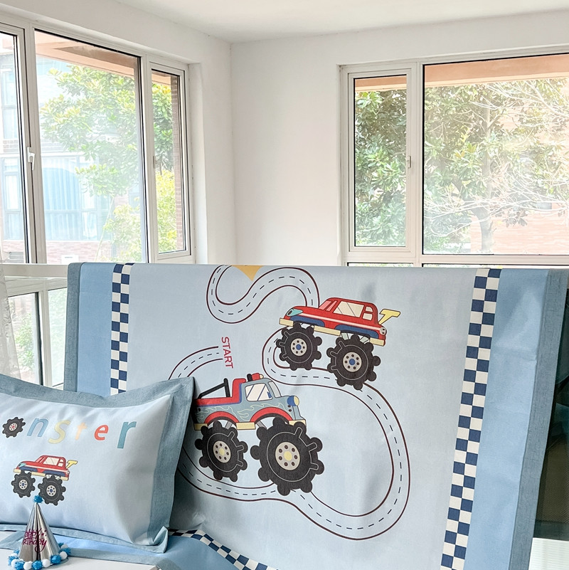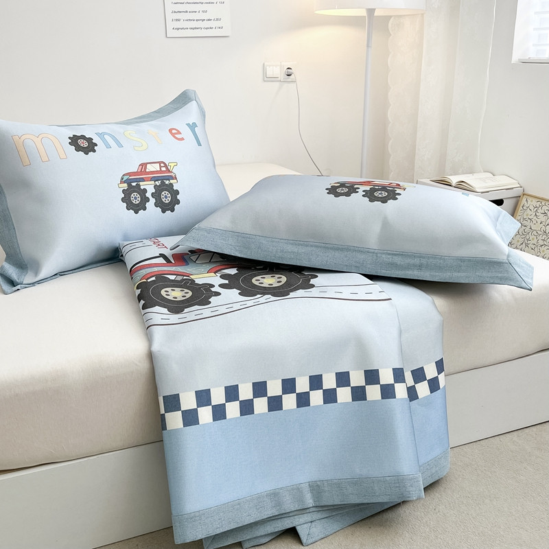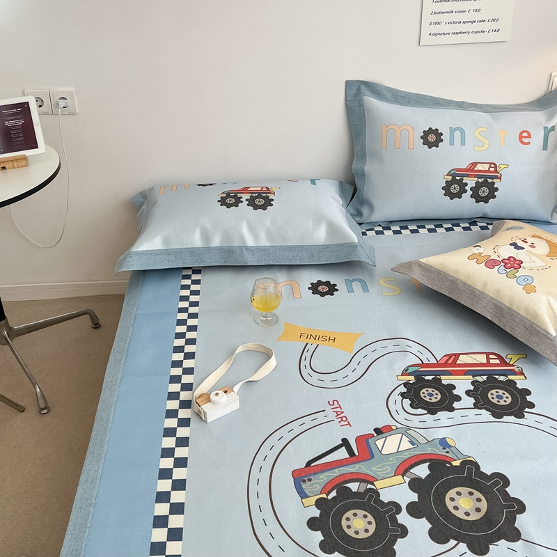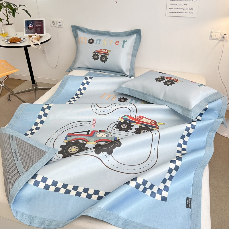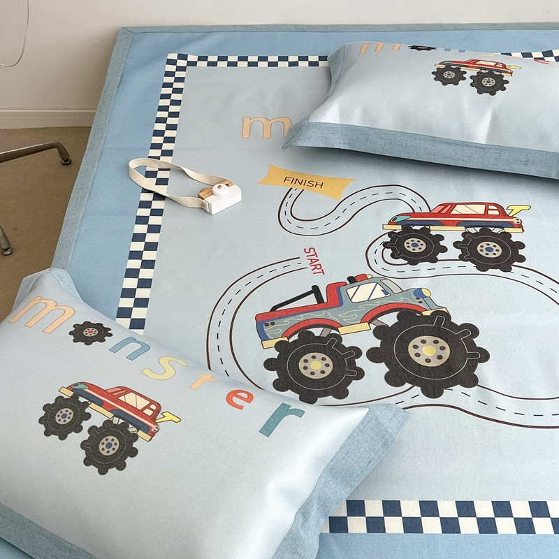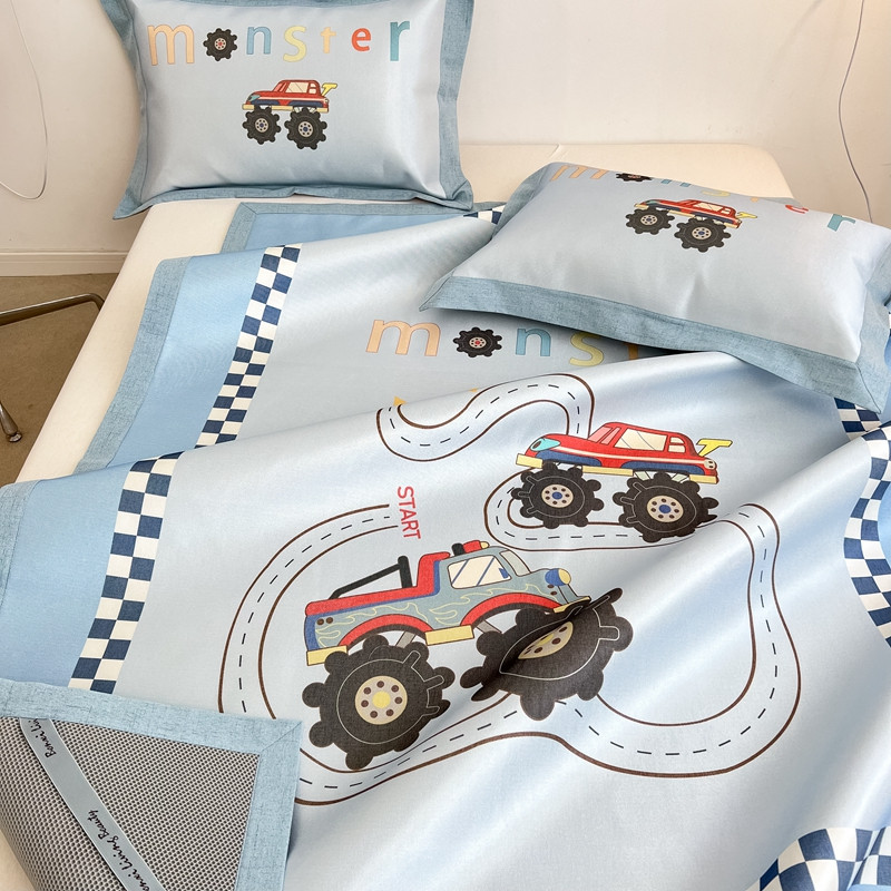 商品名称:本希 2022新款水洗数码印花卡通简约冰丝席床席款 工程赛车