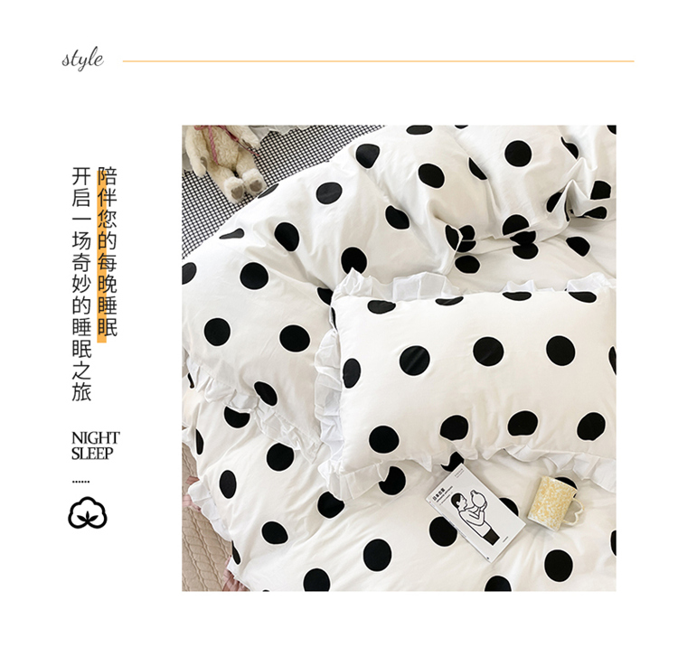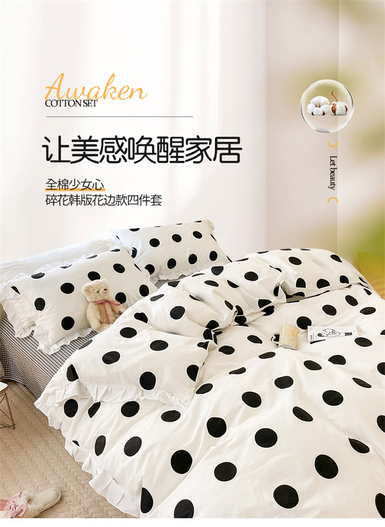 桃子家居 2022新款仙气奶油碎花少女心韩版花边纯棉四件套 花边波点
