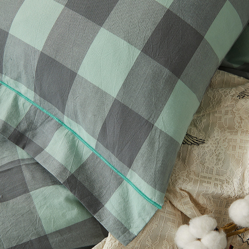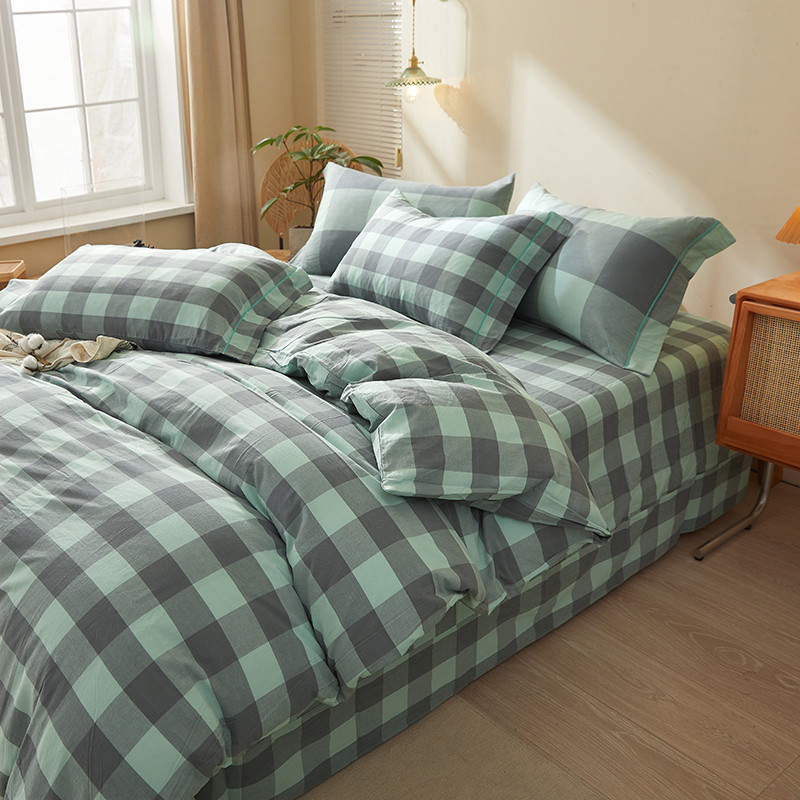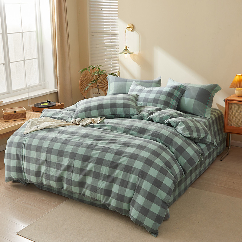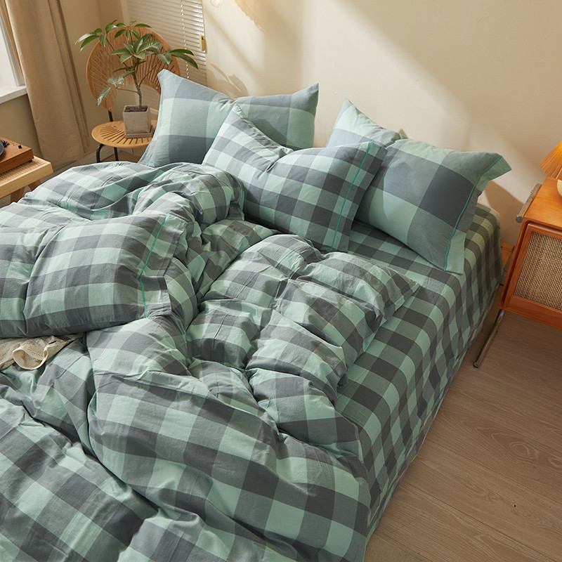 当前位置: 91家纺网 > 商品网购 > 床品套件 > 四件套 > 色织四件套 > 三沁家居家居 2022新款格子色织水洗棉全棉四件套云尚绿中格