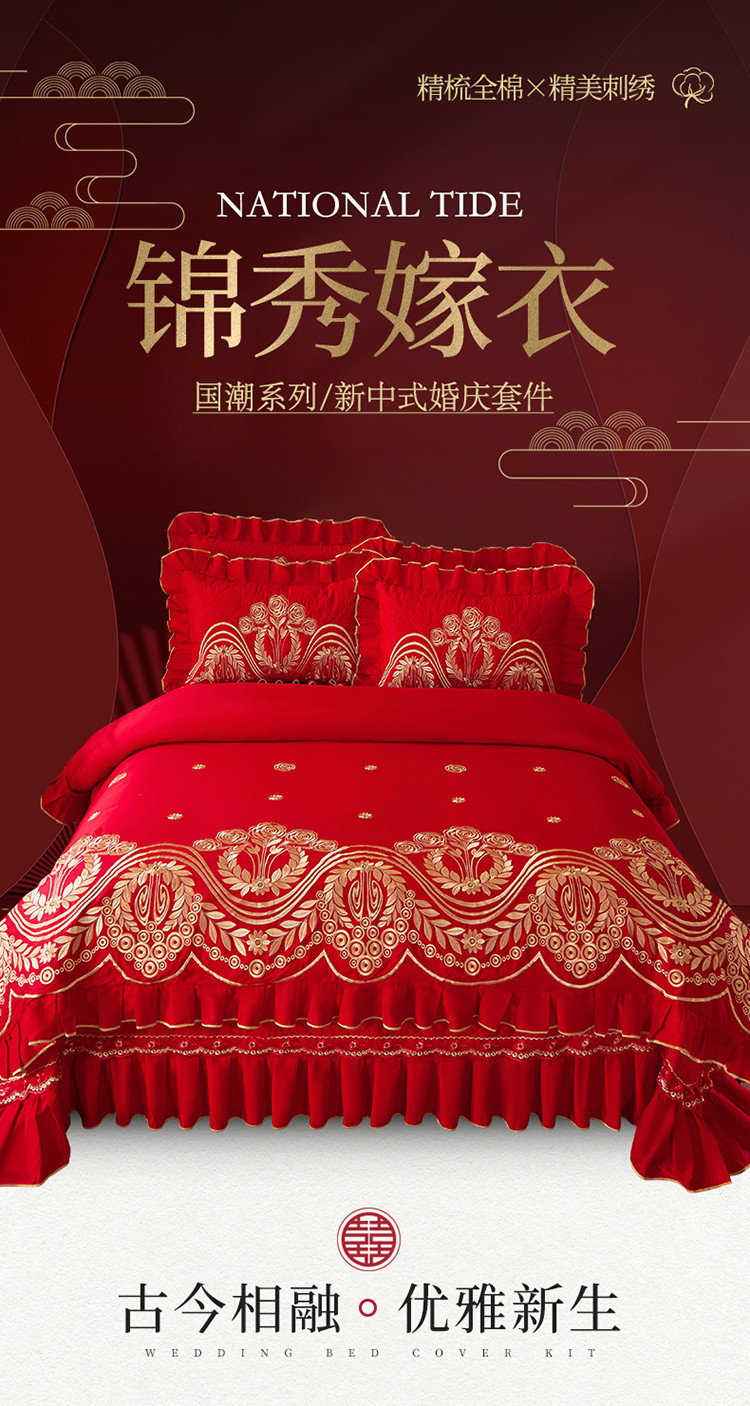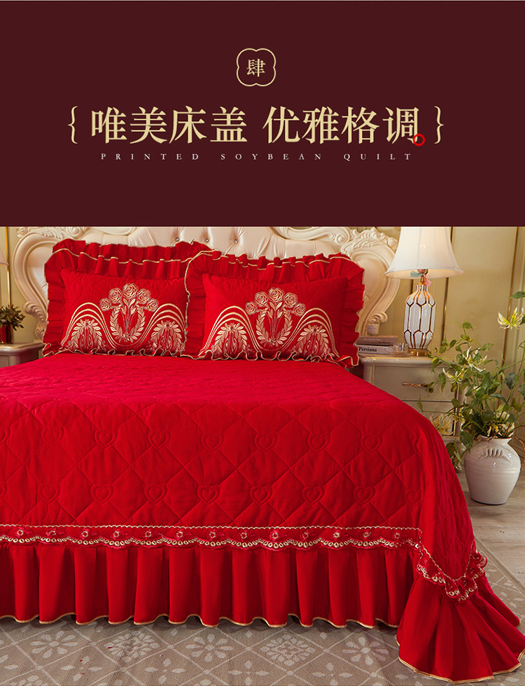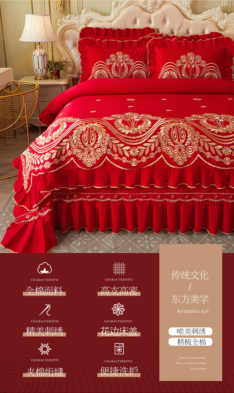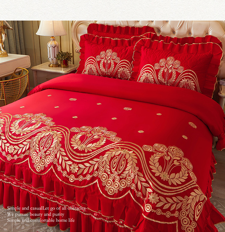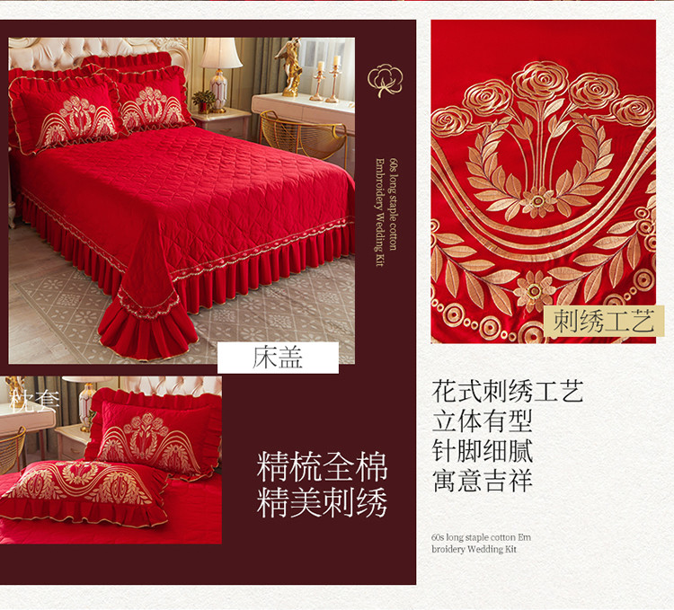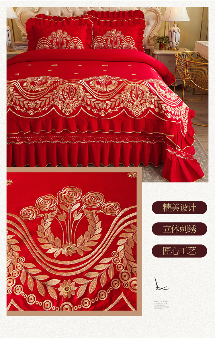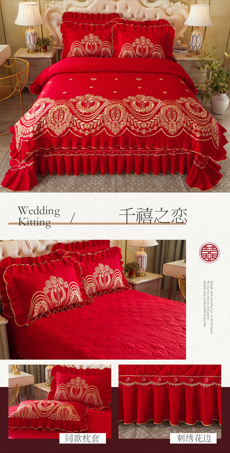 宜凡 2022新款绣花婚庆全棉夹棉床盖款四件套 千禧之恋