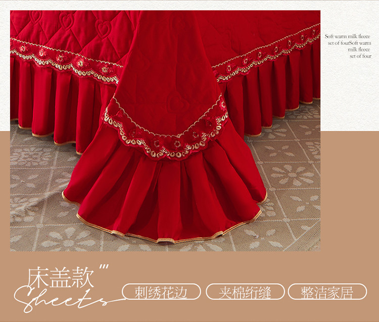 (总)宜凡家纺 2025新款婴儿绒压花全夹棉床裙四件套,韵雅-中国红,韵雅-黑天鹅