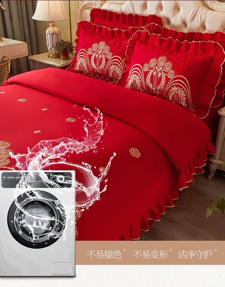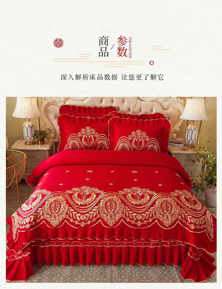 商品名称:宜凡 2022新款绣花婚庆全棉夹棉床盖款四件套 千禧之恋