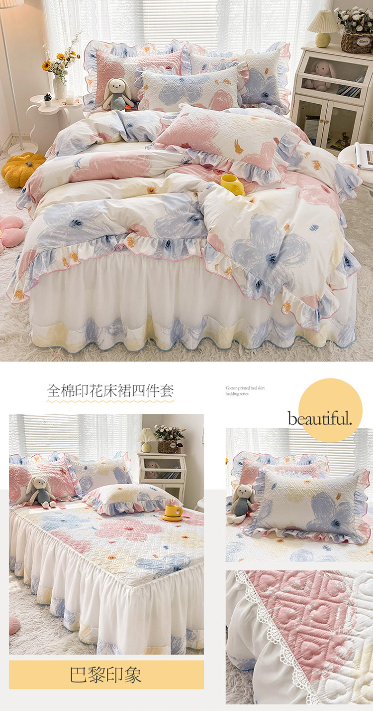 当前位置: 91家纺网 > 商品网购 > 床品套件 > 四件套 > 全棉普通四件套 > 宜凡 2022新款全棉印花夹棉双层裙边床裙款四件套 巴黎印象