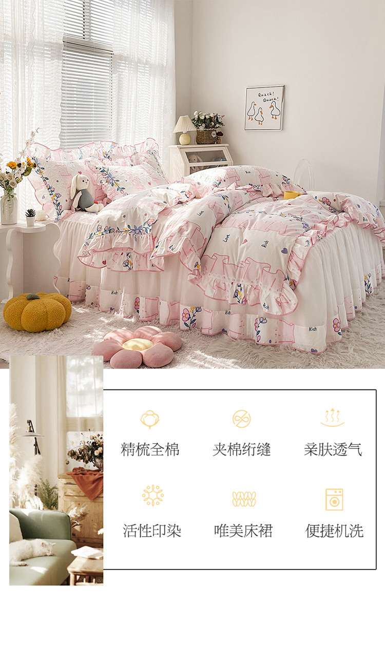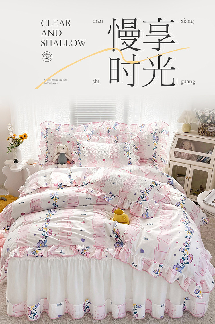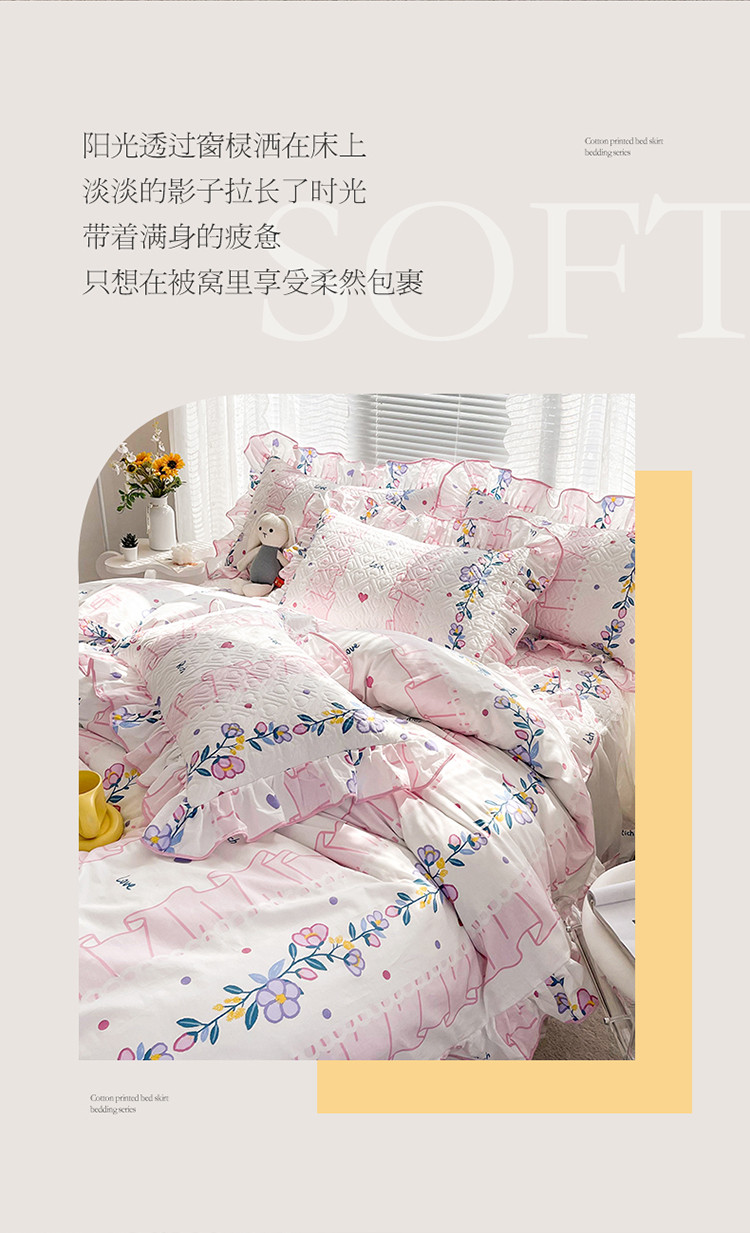 当前位置: 91家纺网 > 商品网购 > 床品套件 > 四件套 > 全棉普通四件套 > 宜凡 2022新款全棉印花夹棉双层裙边床裙款四件套 西雅图之恋