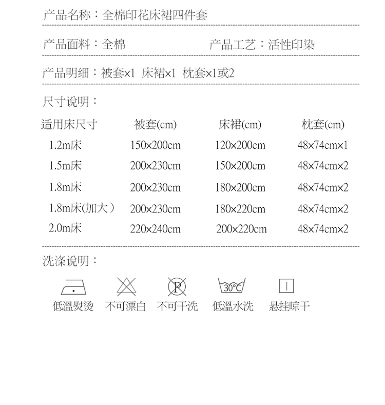 180x220cm夹棉床裙款四件套 | ¥220.00 |