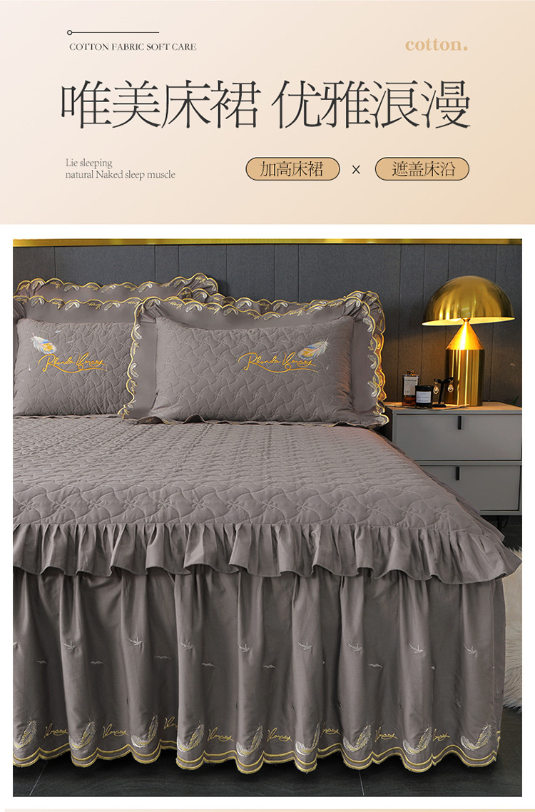 当前位置: 91家纺网 > 商品网购 > 床品套件 > 三件套 > 宜凡 2022新款全棉刺绣夹棉床裙款三件套-芳羽 芳羽夜灰