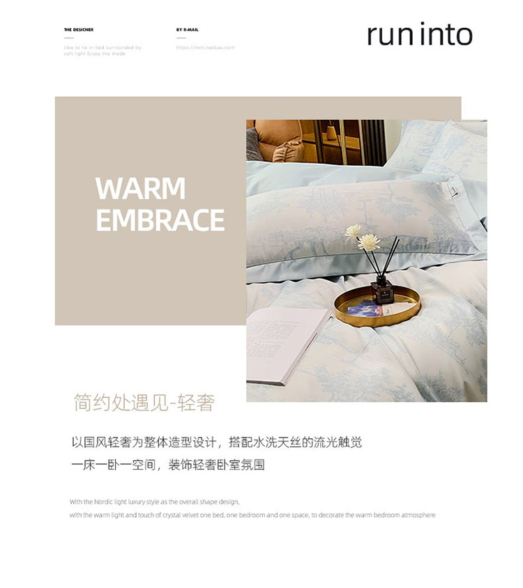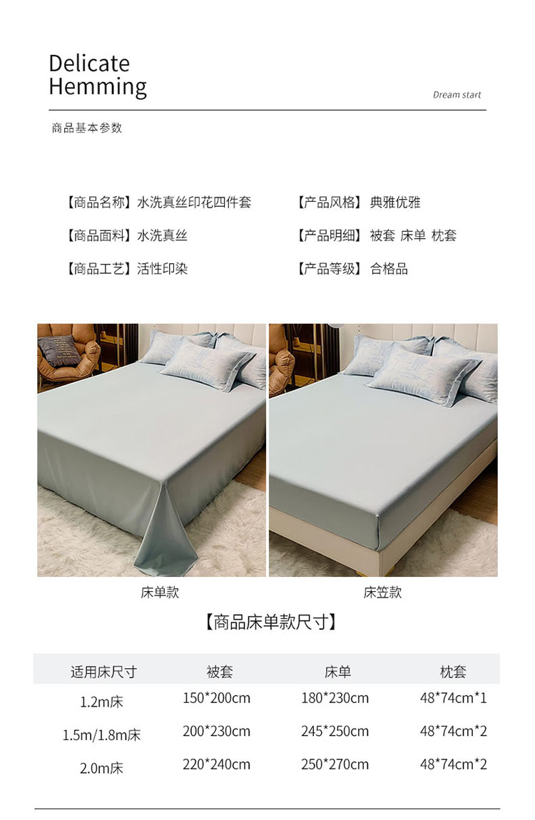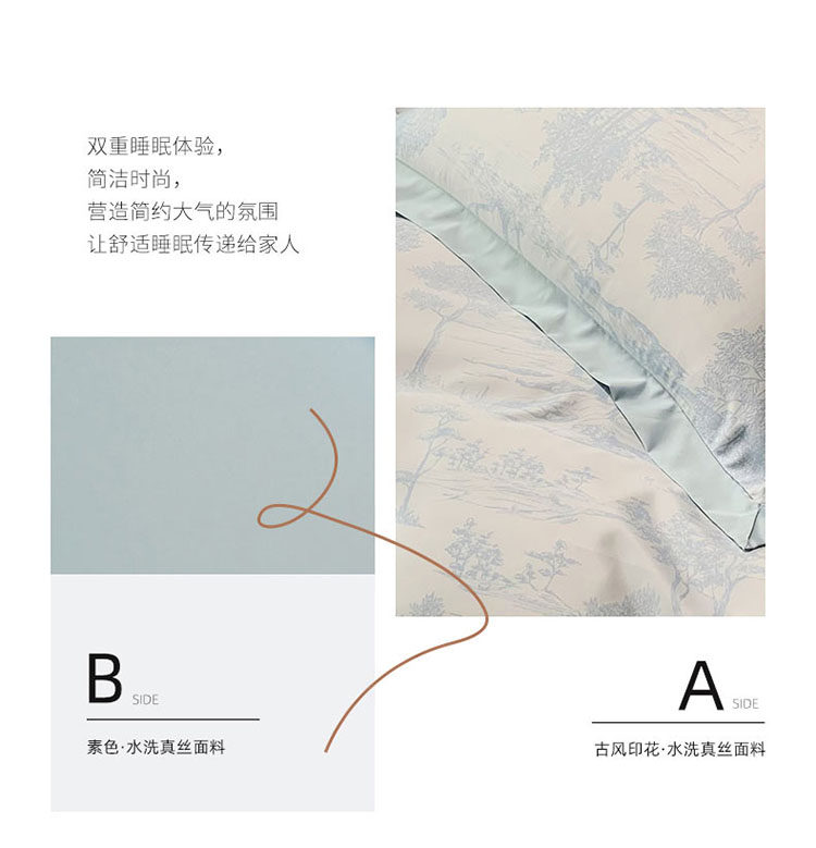 商品名称:ab家纺 2022新款水洗真丝四件套 江南-水绿