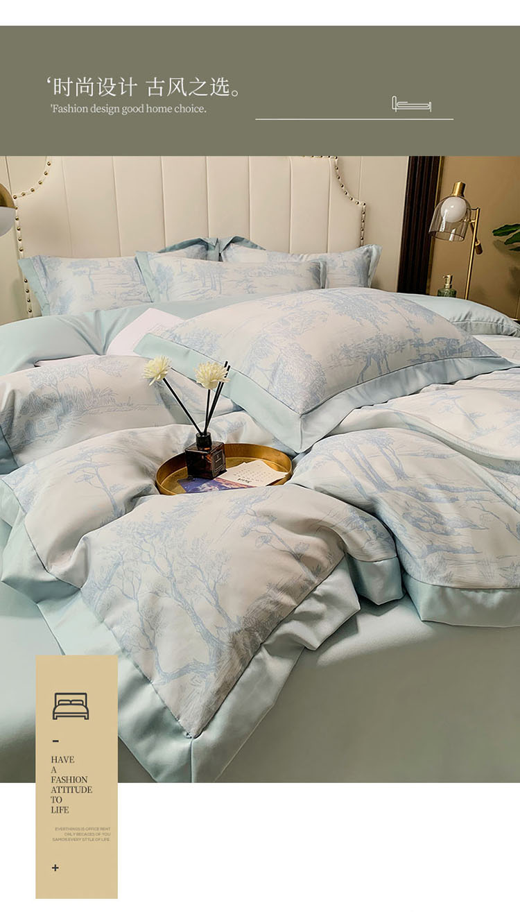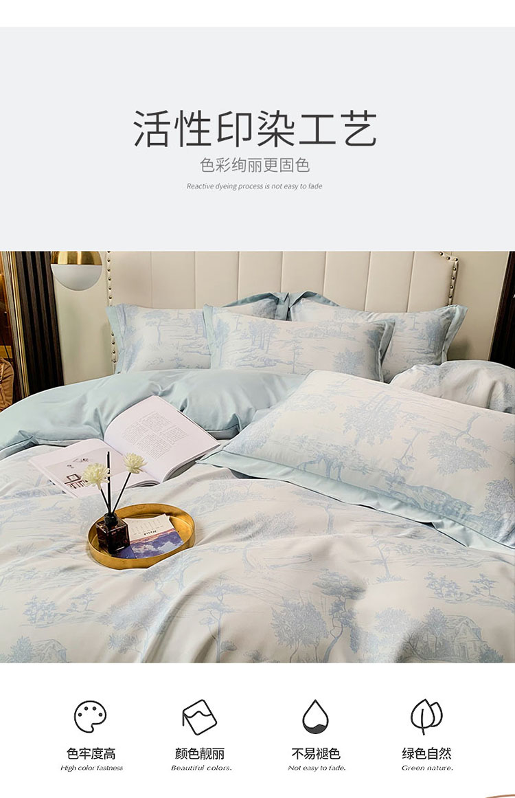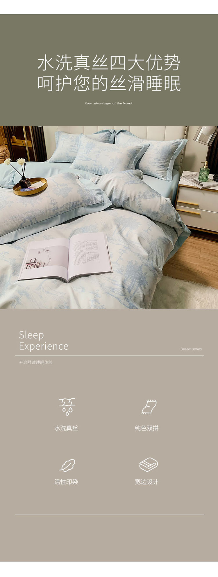 ab家纺 2022新款水洗真丝四件套 江南-水绿