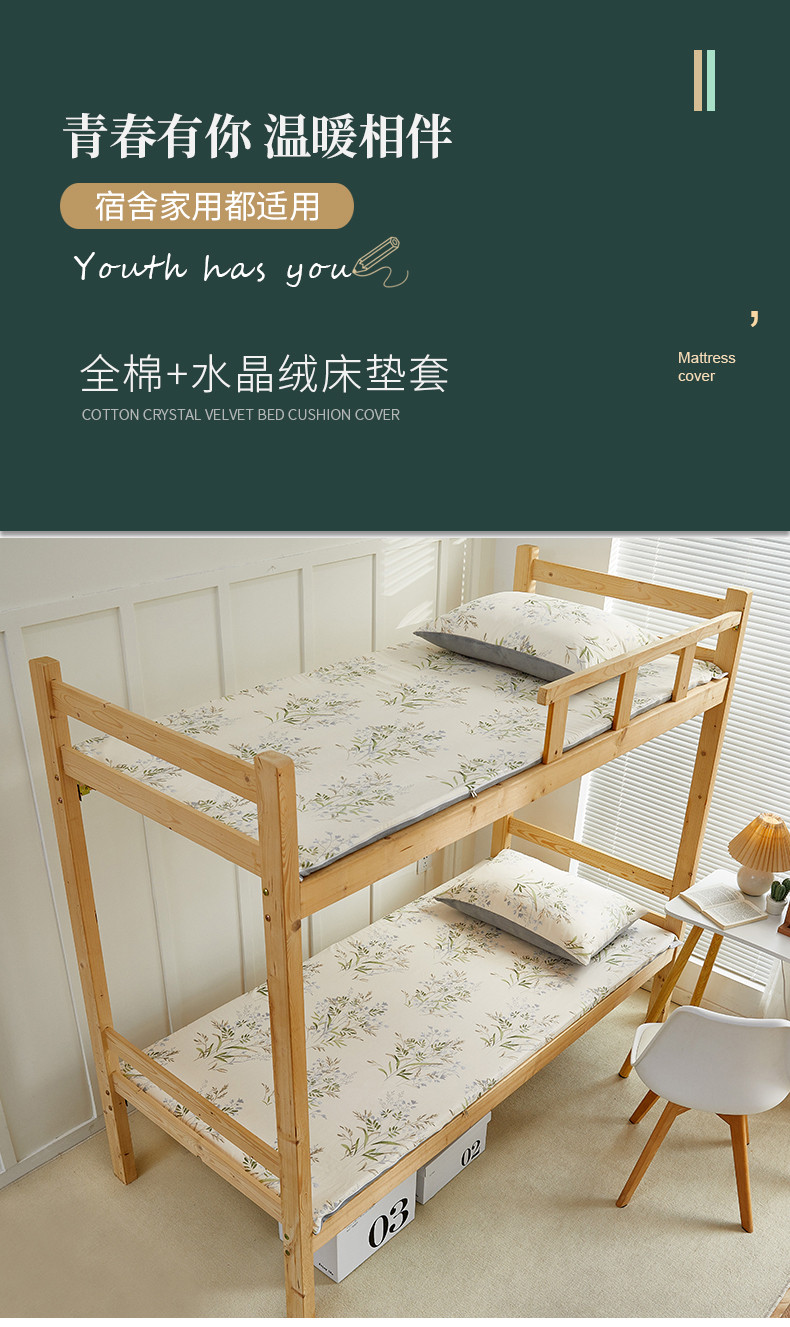 当前位置: 91家纺网 > 商品网购 > 床垫/床褥 > 普通床垫 > 金丝鸟 2023新款全棉加水晶绒棉加绒床垫套 柳叶草