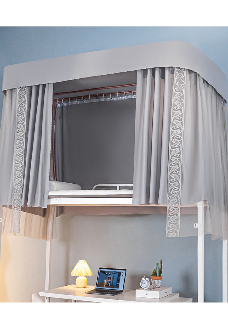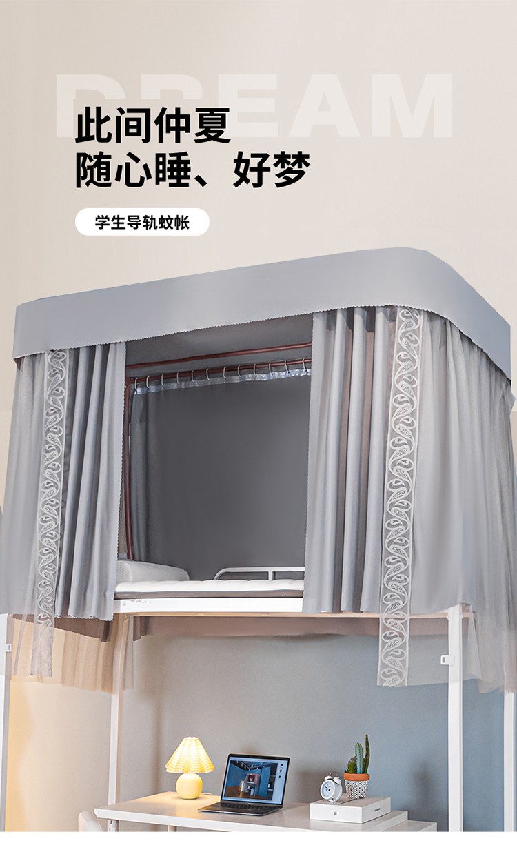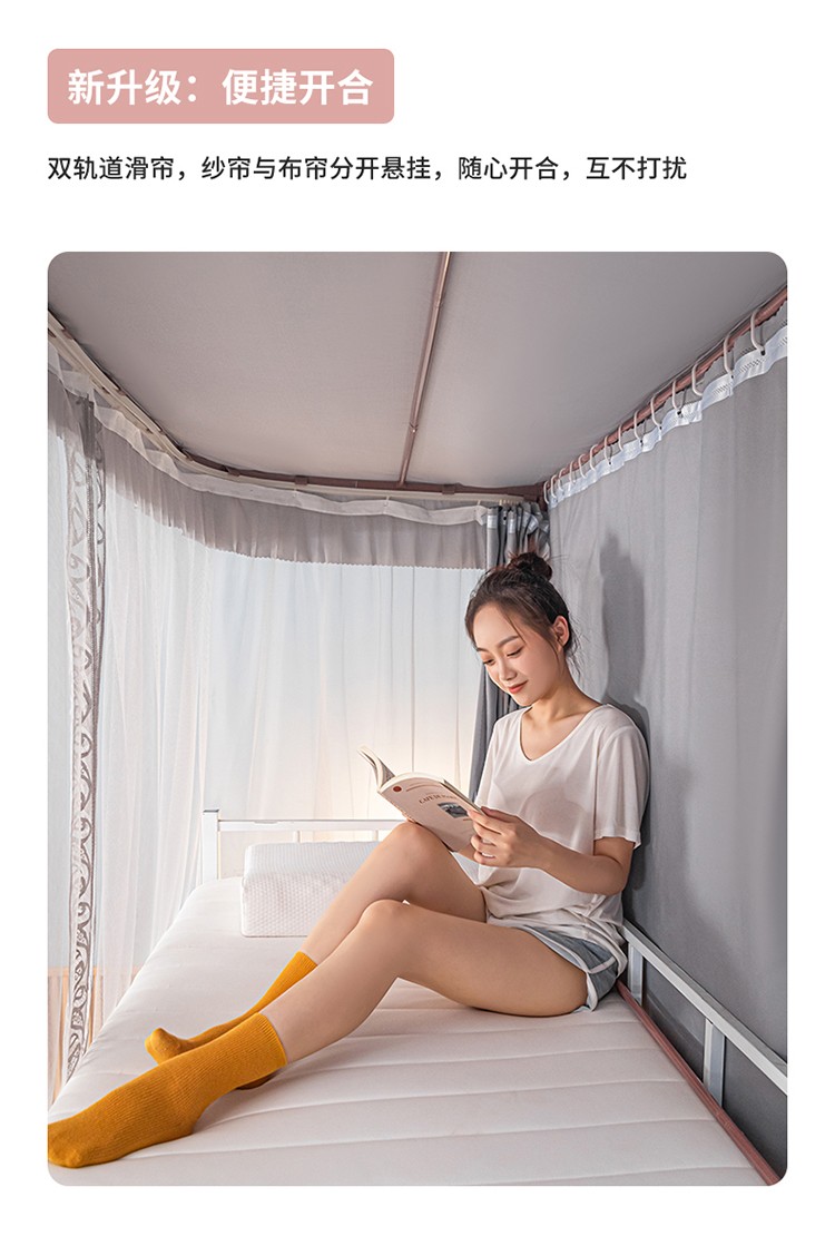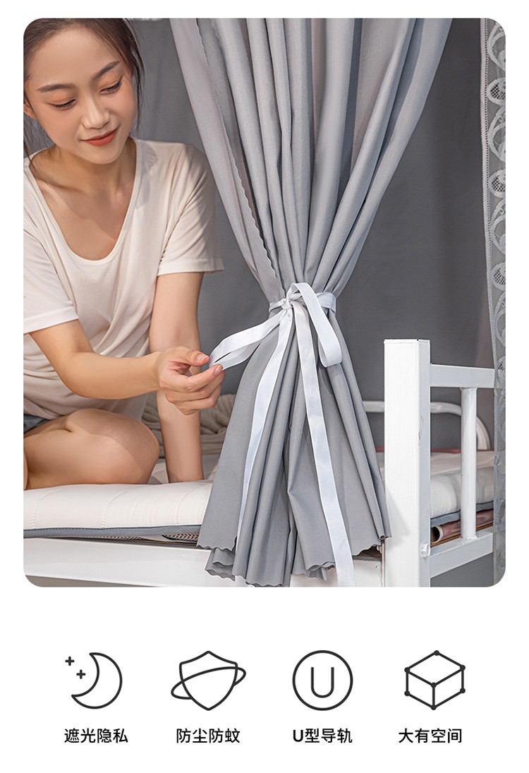 新款U型双轨道双皮条伸缩床帘学蚊帐XD-8 银灰