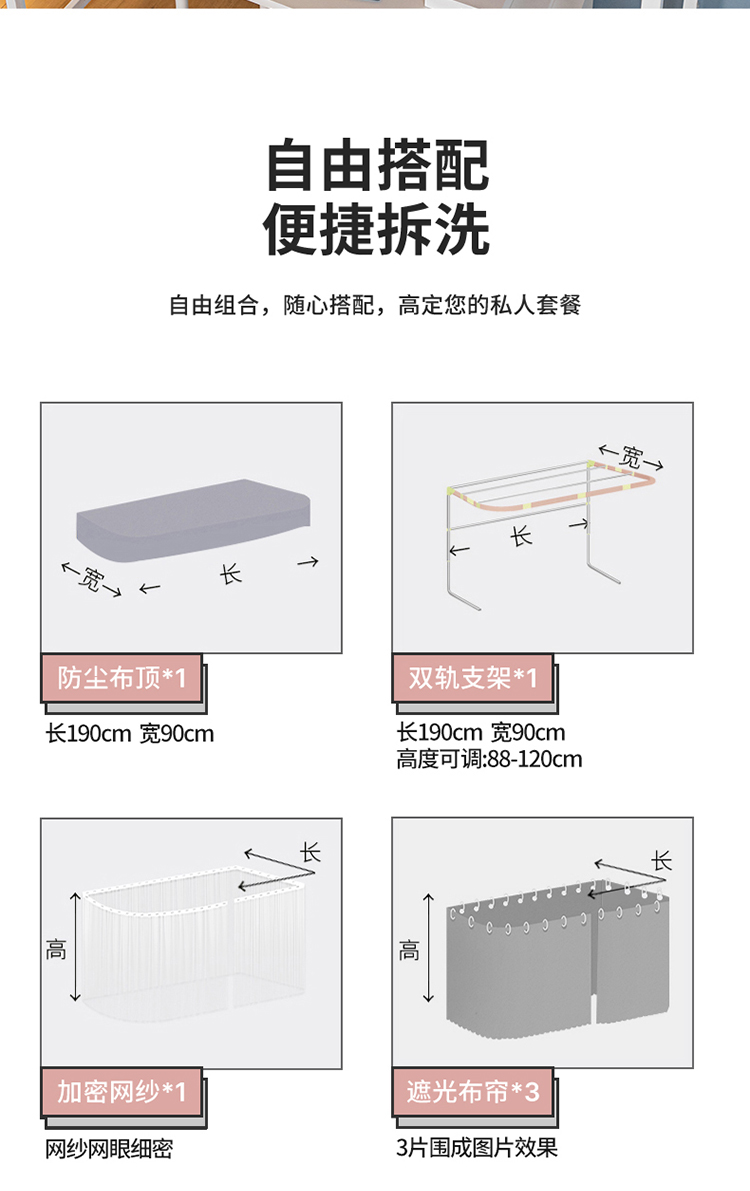 0.9米床(高度可调节.上下铺通用)【宽90长190高88-140cm】