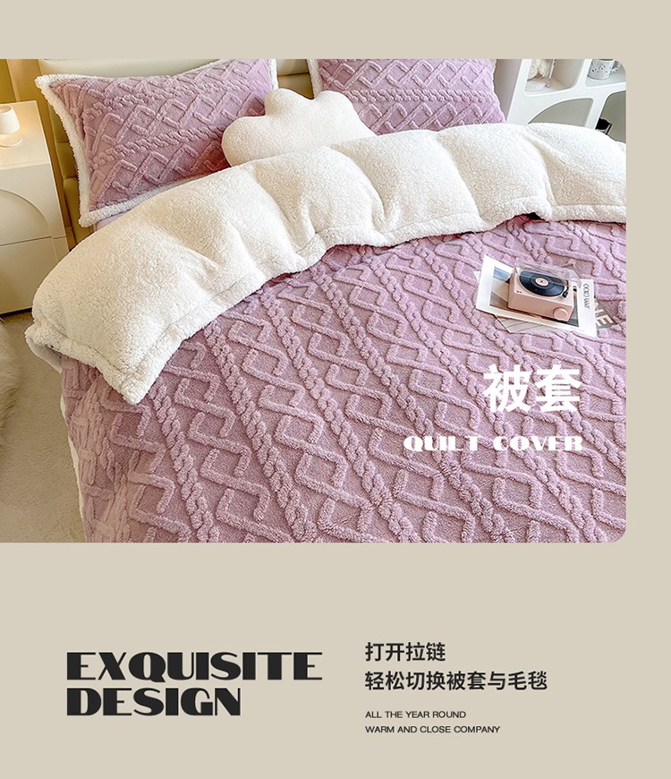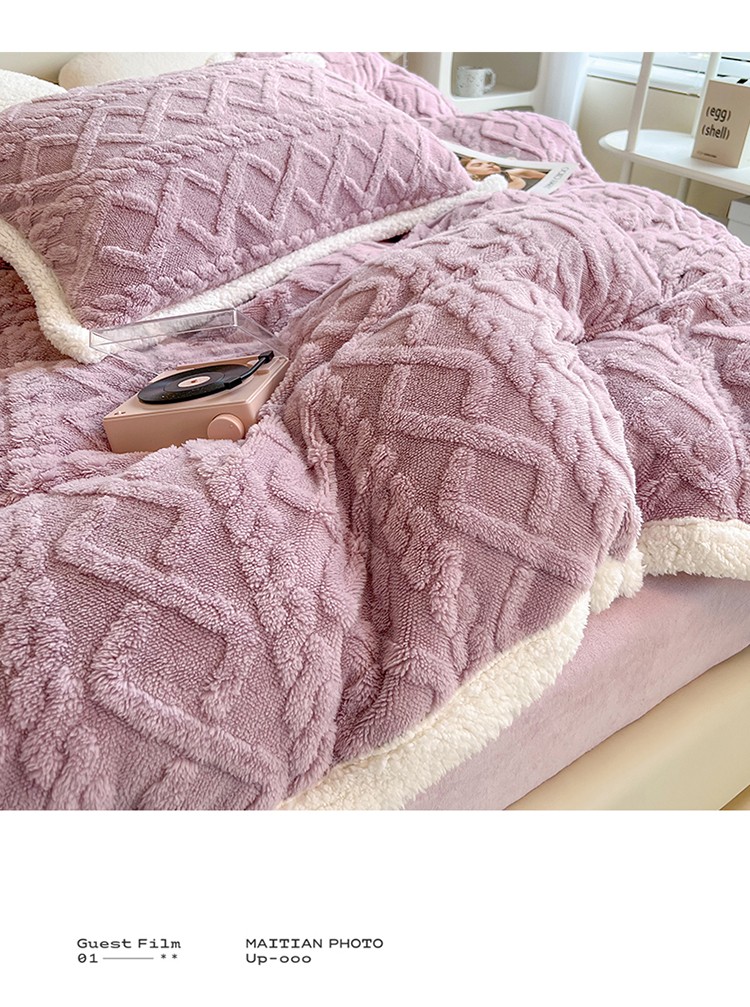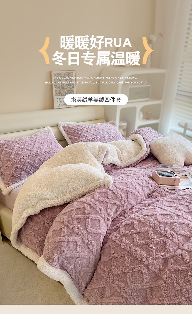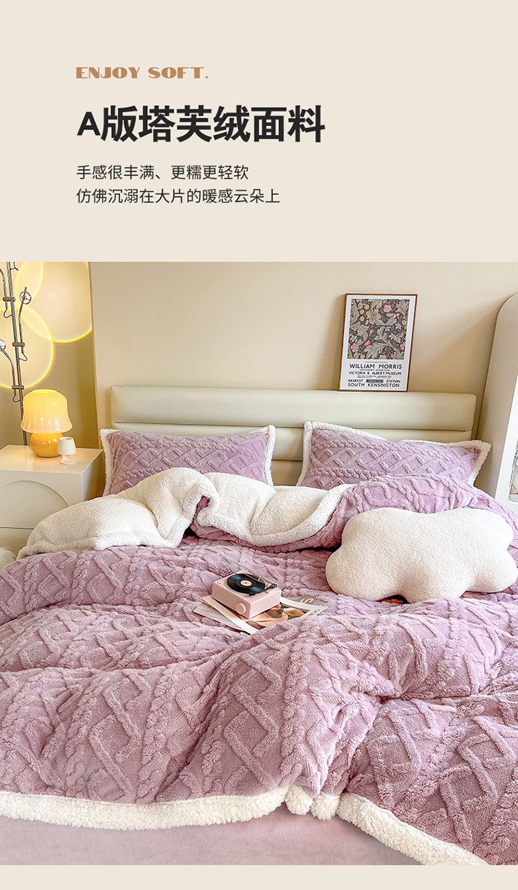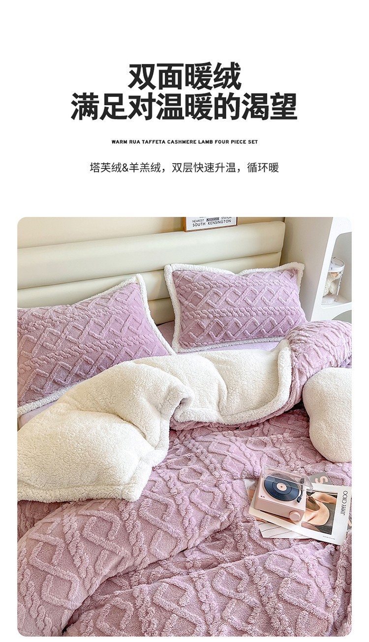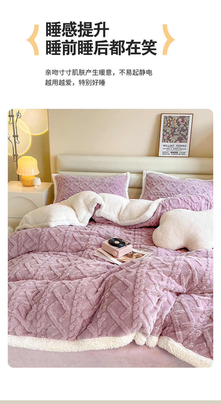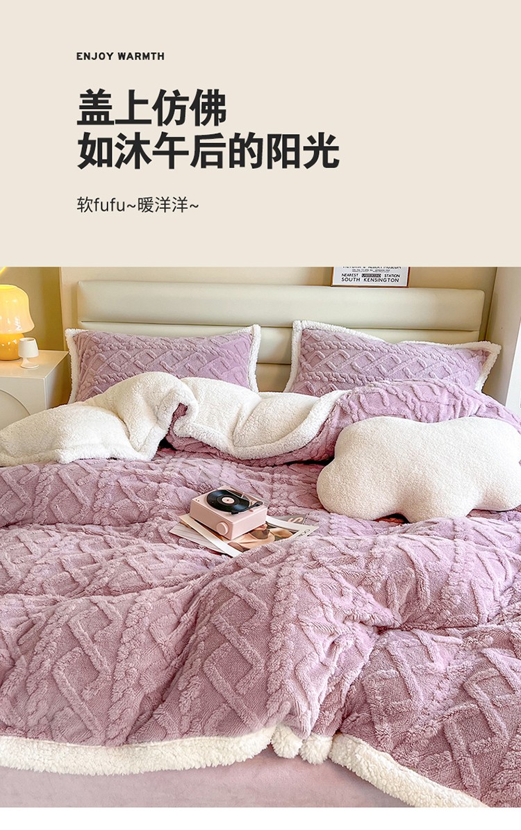 当前位置: 91家纺网 > 商品网购 > 床品套件 > 四件套 > 全棉普通四件套 > 兄弟坊 2023新款塔芙绒羊羔绒毛毯四件套 米兰-紫