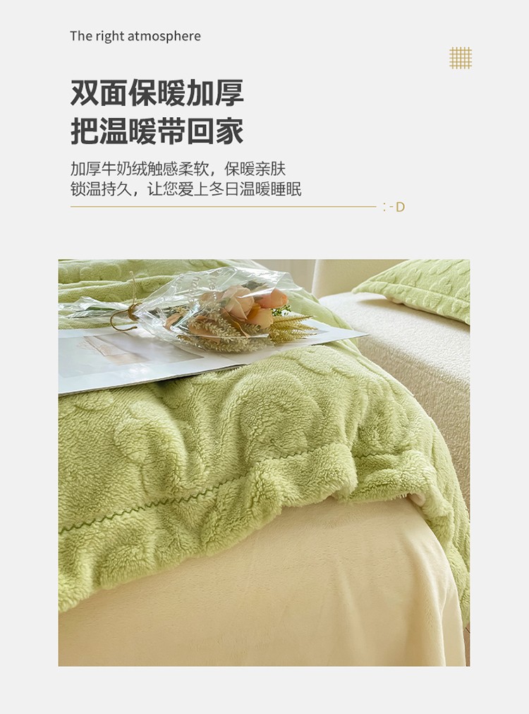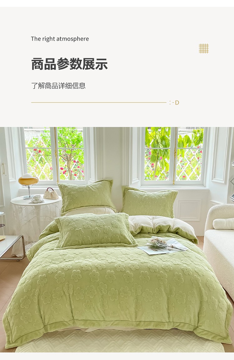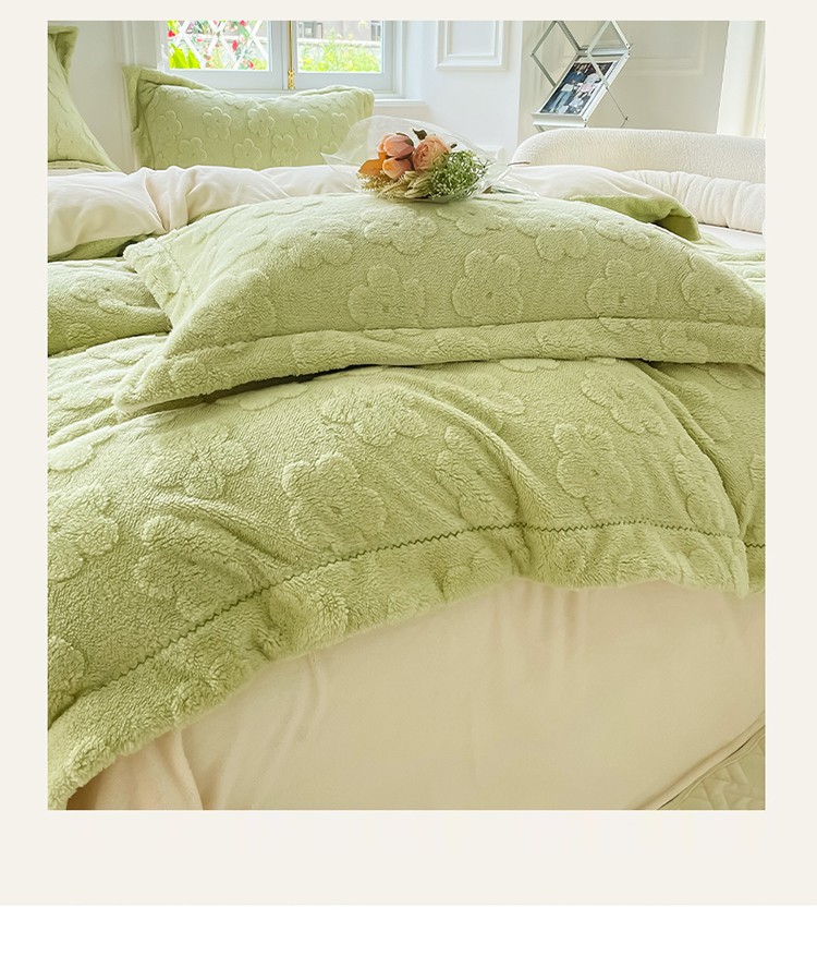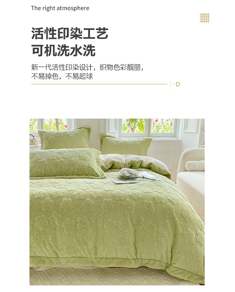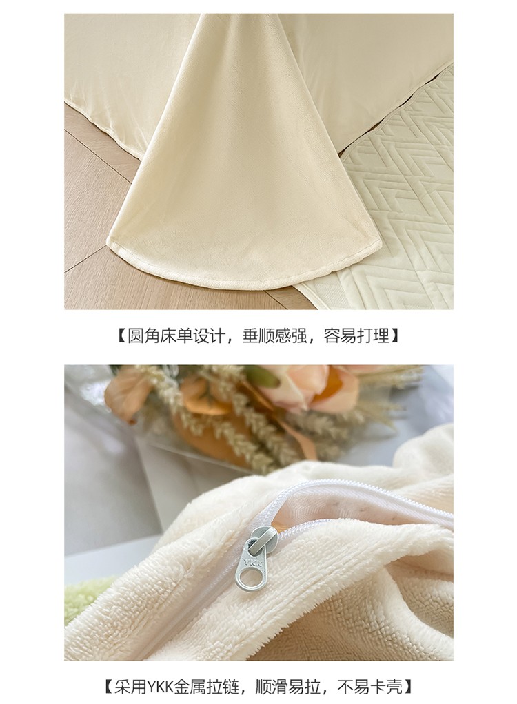 新A类高克重ykk拉链提花牛奶绒四件套直播 浅浅花漾(绿)