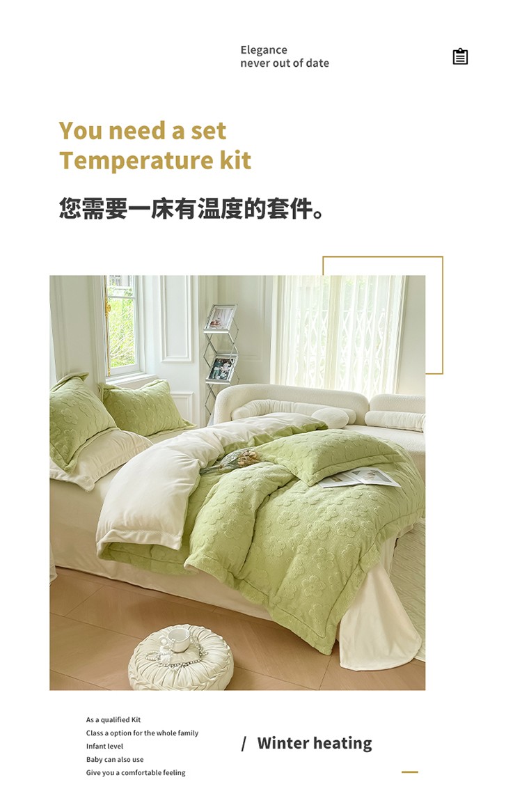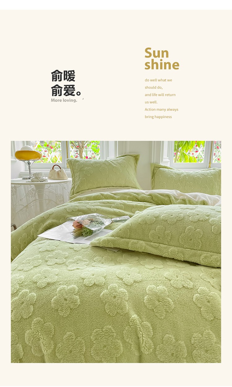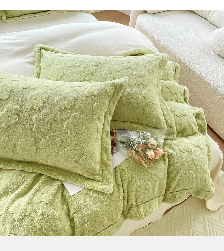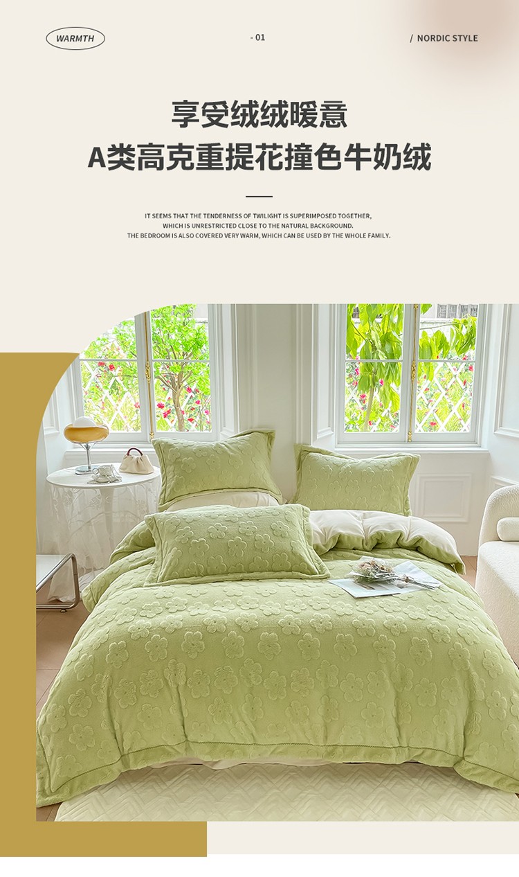 新A类高克重ykk拉链提花牛奶绒四件套直播 浅浅花漾(绿)