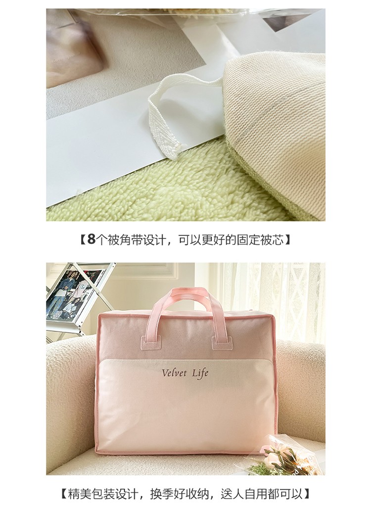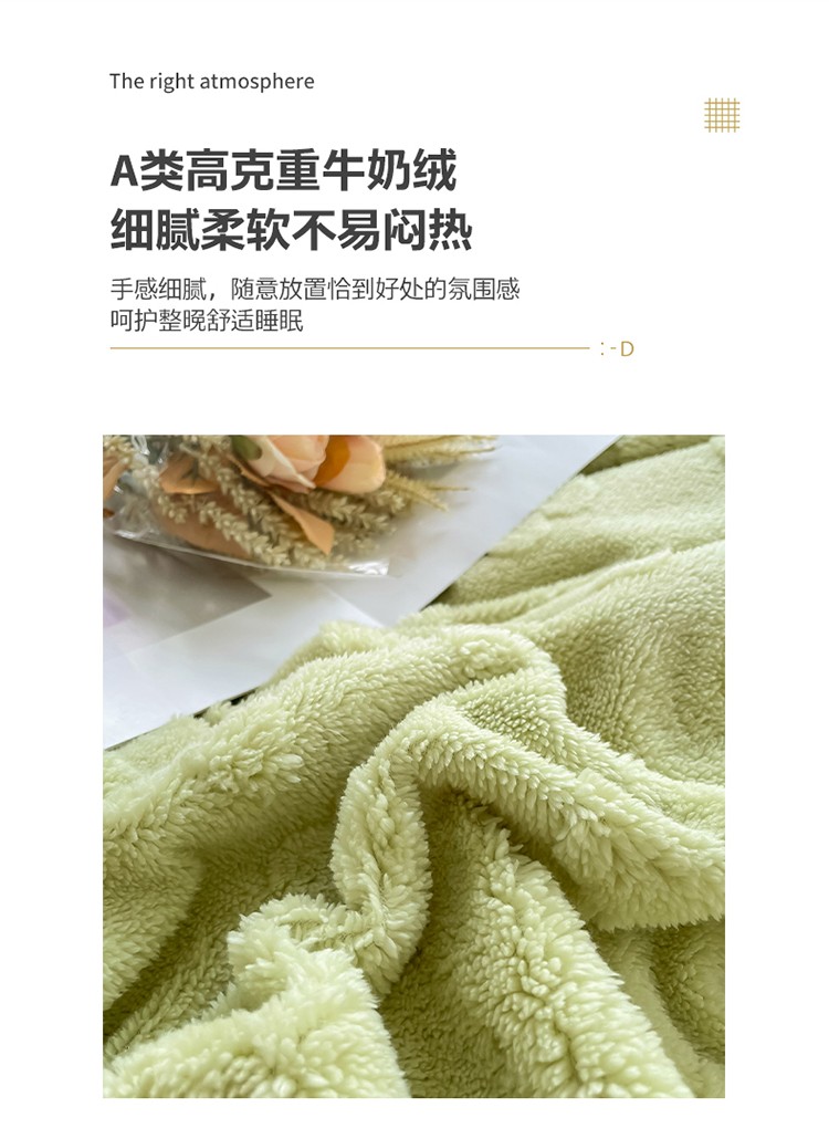 商品名称:新A类高克重ykk拉链提花牛奶绒四件套直播 浅浅花漾(绿)